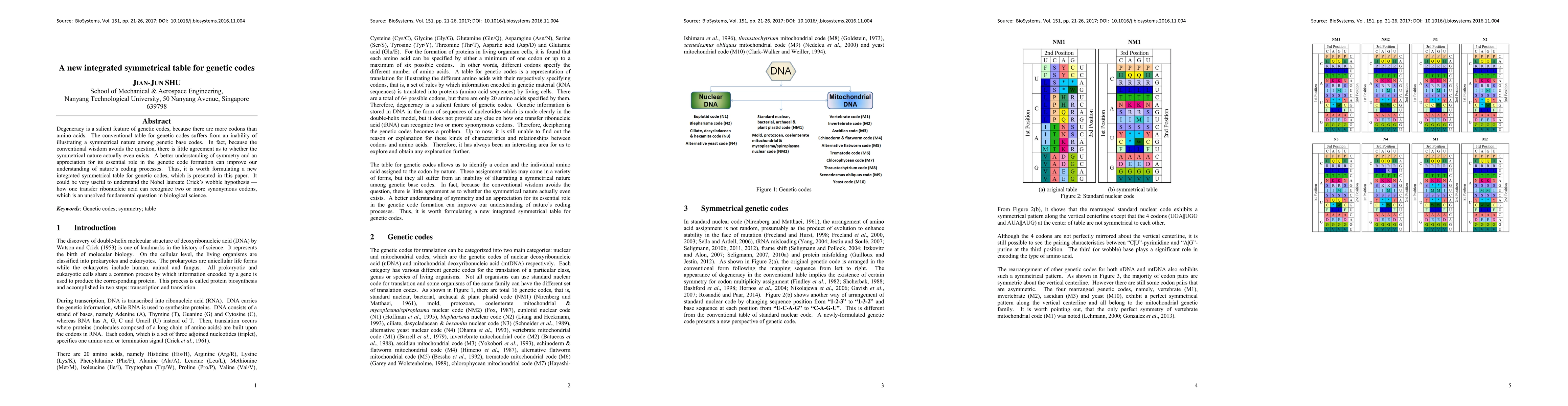 Degeneracy is a salient feature of genetic codes, because there are more codons than amino acids. The conventional table for genetic codes suffers from an inability of illustrating a symmetrical nature among genetic base codes. In fact, because the conventional wisdom avoids the question, there is little agreement as to whether the symmetrical nature actually even exists. A better understanding of symmetry and an appreciation for its essential role in the genetic code formation can improve our understanding of nature coding processes. Thus, it is worth formulating a new integrated symmetrical table for genetic codes, which is presented in this paper. It could be very useful to understand the Nobel laureate Crick wobble hypothesis: how one transfer ribonucleic acid can recognize two or more synonymous codons, which is an unsolved fundamental question in biological science.