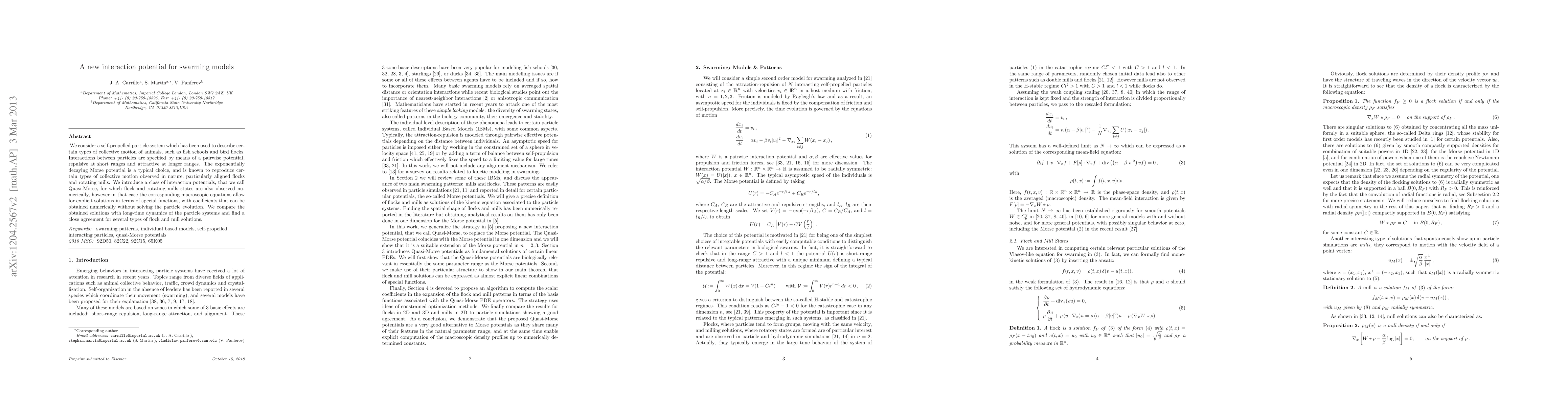 This research introduces a new interaction potential called Quasi-Morse for swarming models, which allows for explicit solutions in terms of special functions. These solutions match closely with long-time dynamics of particle systems, observing flock and rotating mill states.