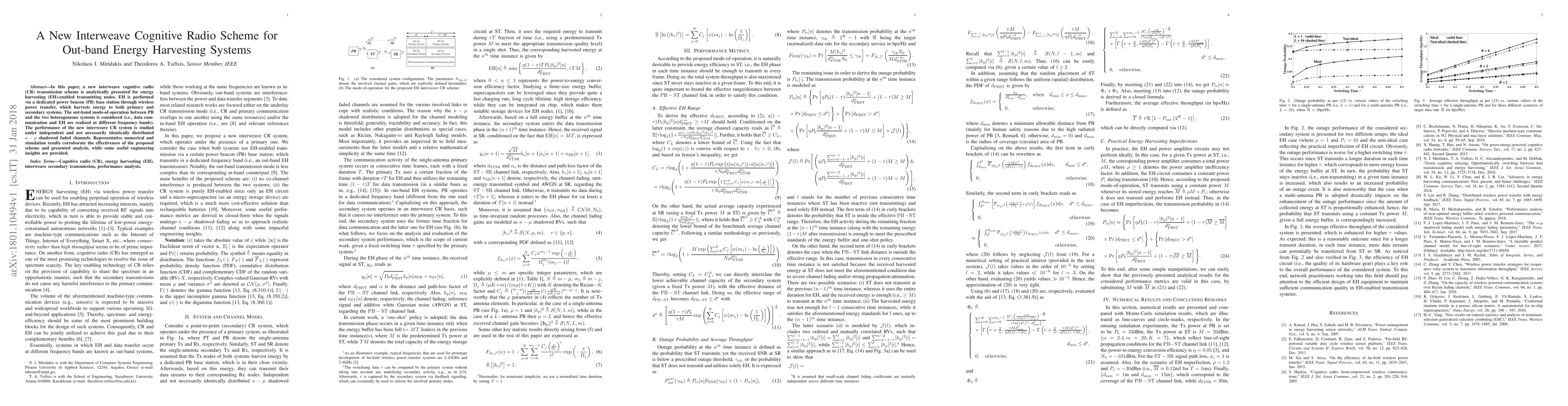 In this paper, a new interweave cognitive radio (CR) transmission scheme is analytically presented for energy harvesting (EH)-enabled transmitting nodes. EH is performed via a dedicated power beacon (PB) base station through wireless power transfer, which harvests energy to both primary and secondary systems. The out-band mode-of-operation between PB and the two heterogeneous systems is considered (i.e., data communication and EH are realized at different frequency bands). The performance of the new interweave CR system is studied under independent and not necessarily identically distributed $\kappa-\mu$ shadowed faded channels. Representative numerical and simulation results corroborate the effectiveness of the proposed scheme and presented analysis, while some useful engineering insights are provided.