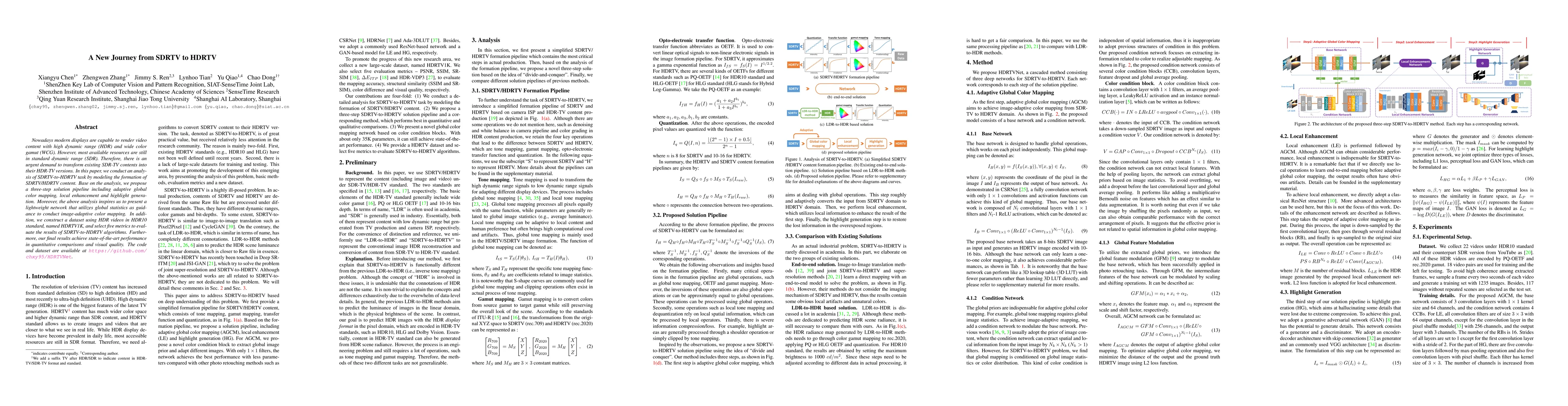 This paper proposes a three-step method for converting SDRTV content to HDRTV, utilizing adaptive global color mapping, local enhancement, and highlight generation. It also introduces a lightweight network for image-adaptive color mapping and a new HDR video dataset, HDRTV1K, for evaluation, achieving state-of-the-art performance in both quantitative metrics and visual quality.