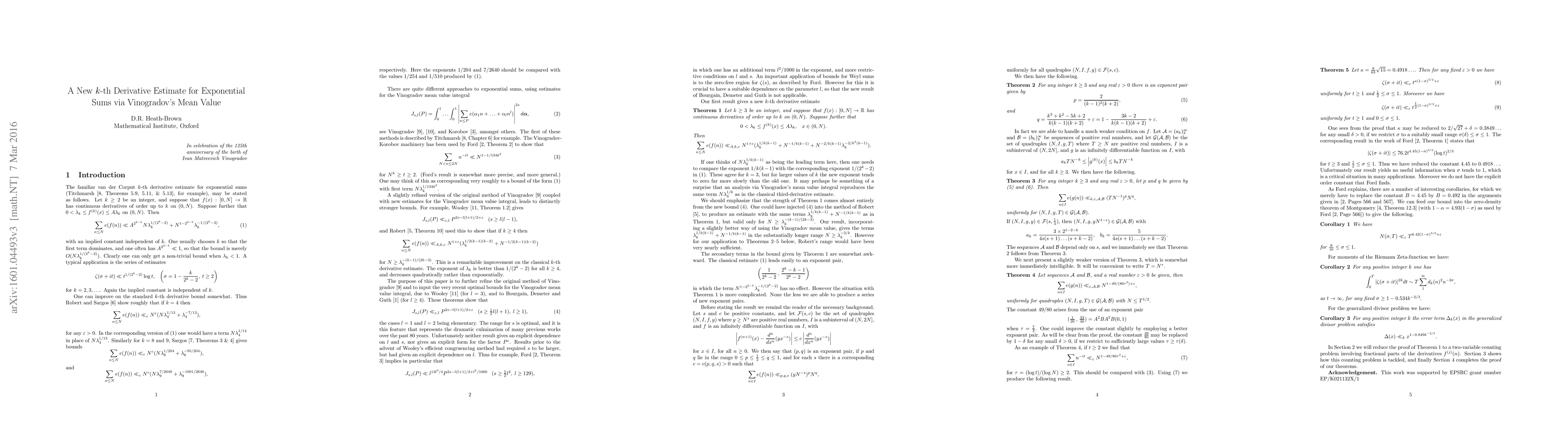 We give a slight refinement to the process by which estimates for exponential sums are extracted from bounds for Vinogradov's mean value. Coupling this with the recent works of Wooley, and of Bourgain, Demeter and Guth, providing optimal bounds for the Vinogradov mean value, we produce a powerful new $k$-th derivative estimate. Roughly speaking, this improves the van der Corput estimate for $k\ge 4$. Various corollaries are given, showing for example that $\zeta(\sigma+it)\ll_{\varepsilon}t^{(1-\sigma)^{3/2}/2+\varepsilon}$ for $t\ge 2$ and $0\le\sigma\le 1$, for any fixed $\varepsilon>0$.