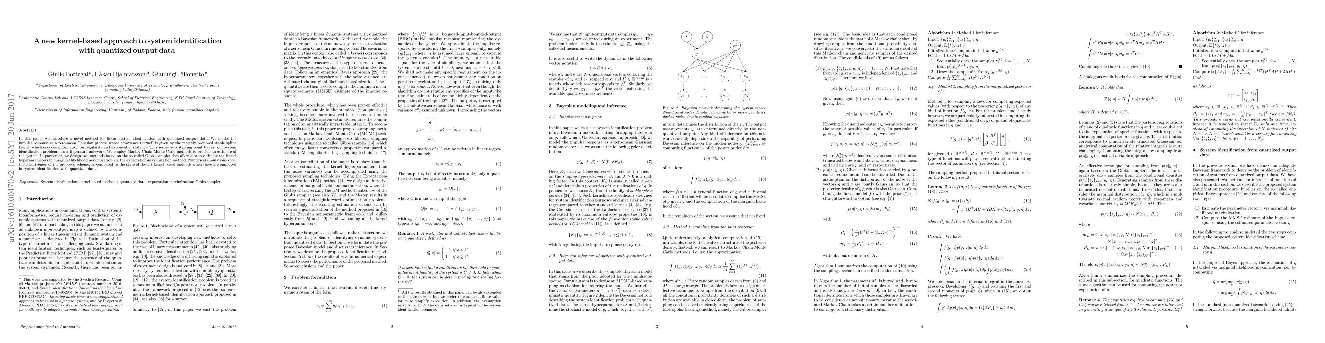 This paper proposes a novel kernel-based approach for linear system identification using quantized output data, employing a stable spline kernel within a Bayesian framework and Markov Chain Monte Carlo for estimation. The Gibbs sampler and expectation-maximization method are used to estimate system parameters and kernel hyperparameters, demonstrating superior performance in simulations.