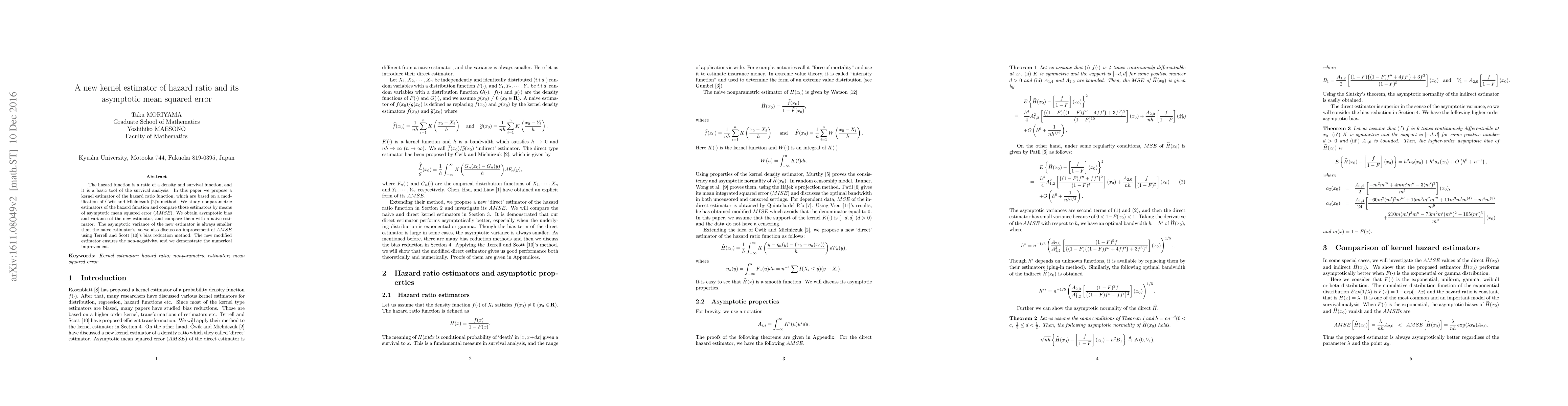 This paper proposes a new kernel estimator for the hazard ratio function based on a modification of Cwik and Mielniczuk's method, comparing it with a naive estimator in terms of asymptotic mean squared error (AMSE). The new estimator shows improved asymptotic variance and non-negativity, demonstrating numerical improvements over traditional methods.