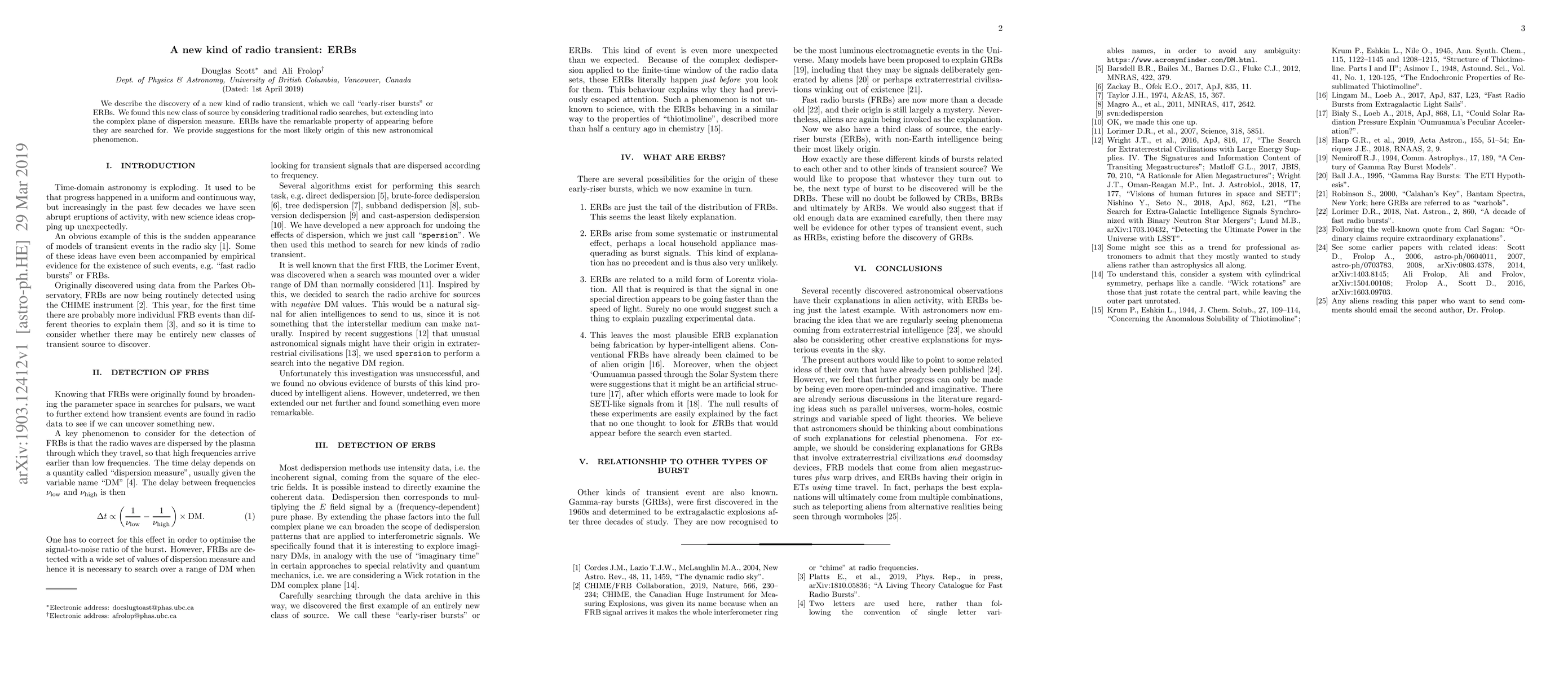 Researchers discovered a new type of radio transient called 'early-riser bursts' (ERBs) that appear before they are searched for in the complex plane of dispersion measure. ERBs have a remarkable property that suggests a potential new astronomical phenomenon with an unknown origin.
