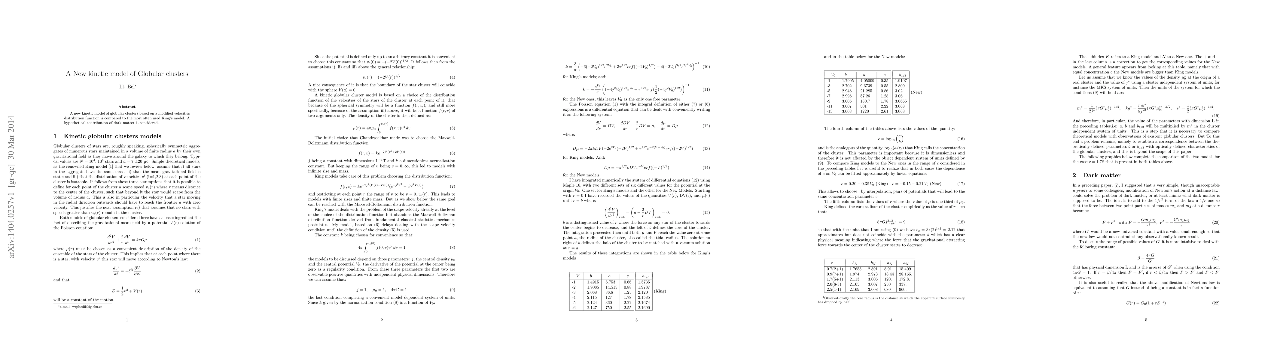 This paper introduces a novel kinetic model for globular clusters using a modified velocity distribution function, comparing it to the traditional King's model, and explores the potential influence of dark matter on cluster dynamics.