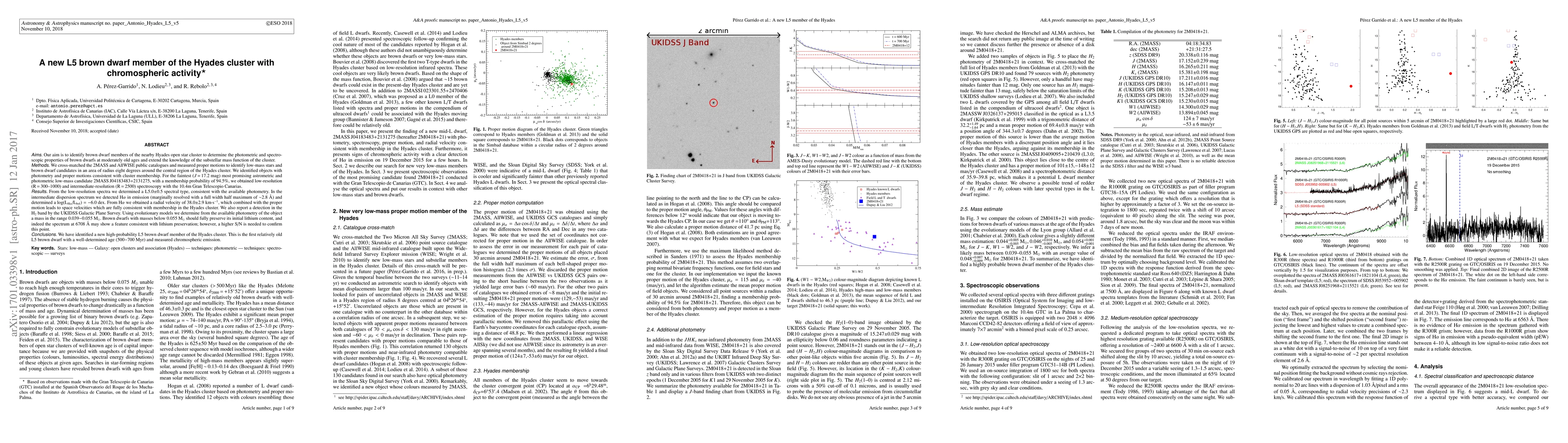 A new L5 brown dwarf was identified in the Hyades cluster through spectroscopic analysis of a faint candidate, revealing chromospheric activity and membership probability of 94.5%.