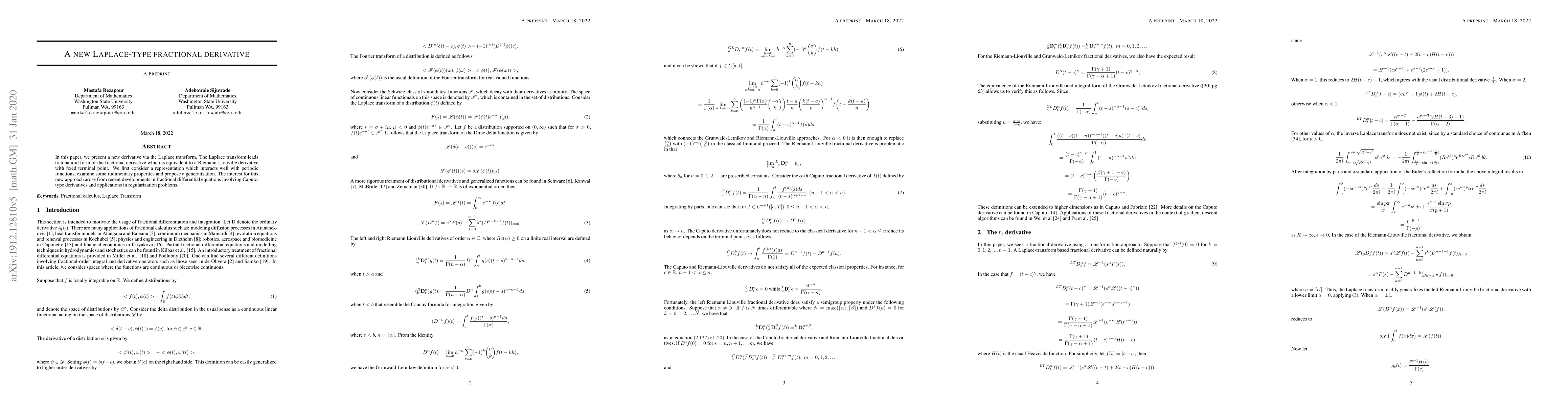 This paper introduces a novel fractional derivative derived from the Laplace transform, equivalent to the Riemann-Liouville derivative with fixed endpoints. It explores its properties, especially with periodic functions, and suggests a generalization, driven by recent interest in fractional differential equations and applications in regularization problems.