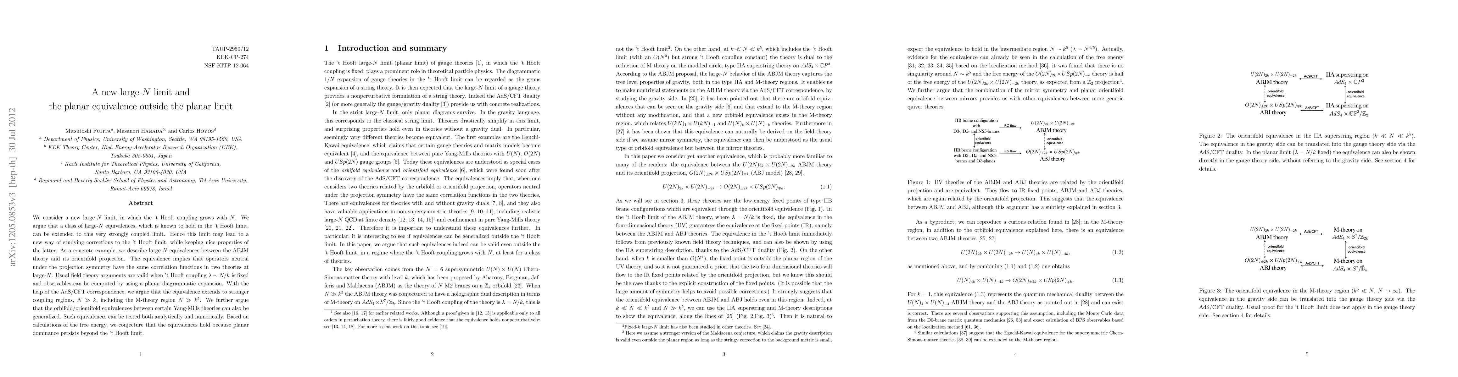 This paper introduces a new large-N limit where the 't Hooft coupling increases with N, extending large-N equivalences to strongly coupled regimes beyond the traditional 't Hooft limit. It demonstrates this through equivalences between the ABJM theory and its orientifold projection, suggesting that planar dominance persists beyond the conventional limit.