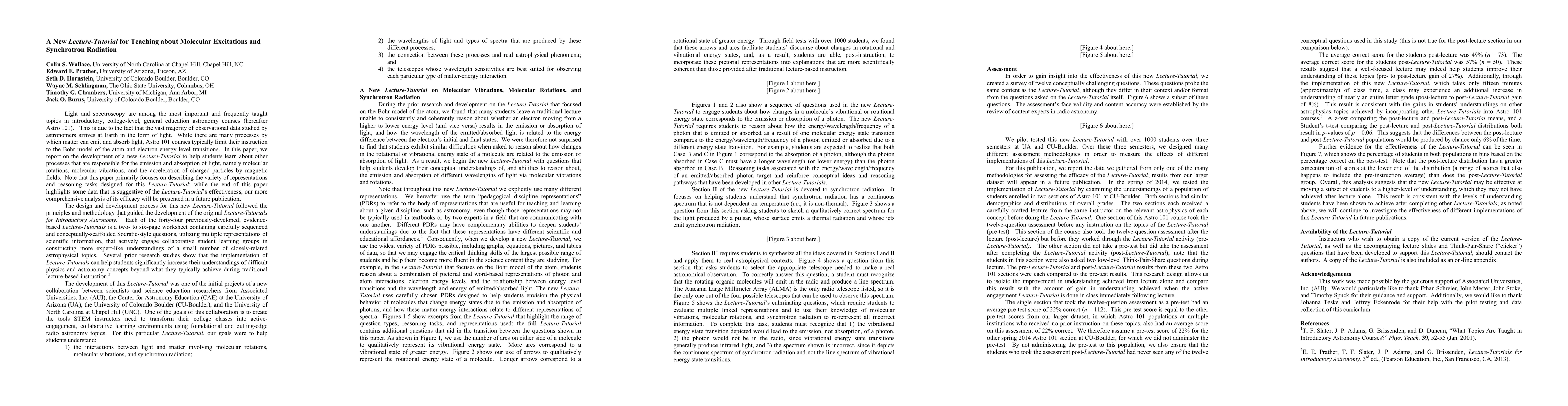 Light and spectroscopy are among the most important and frequently taught topics in introductory, college-level, general education astronomy courses. This is due to the fact that the vast majority of observational data studied by astronomers arrives at Earth in the form of light. While there are many processes by which matter can emit and absorb light, Astro 101 courses typically limit their instruction to the Bohr model of the atom and electron energy level transitions. In this paper, we report on the development of a new Lecture-Tutorial to help students learn about other processes that are responsible for the emission and absorption of light, namely molecular rotations, molecular vibrations, and the acceleration of charged particles by magnetic fields.