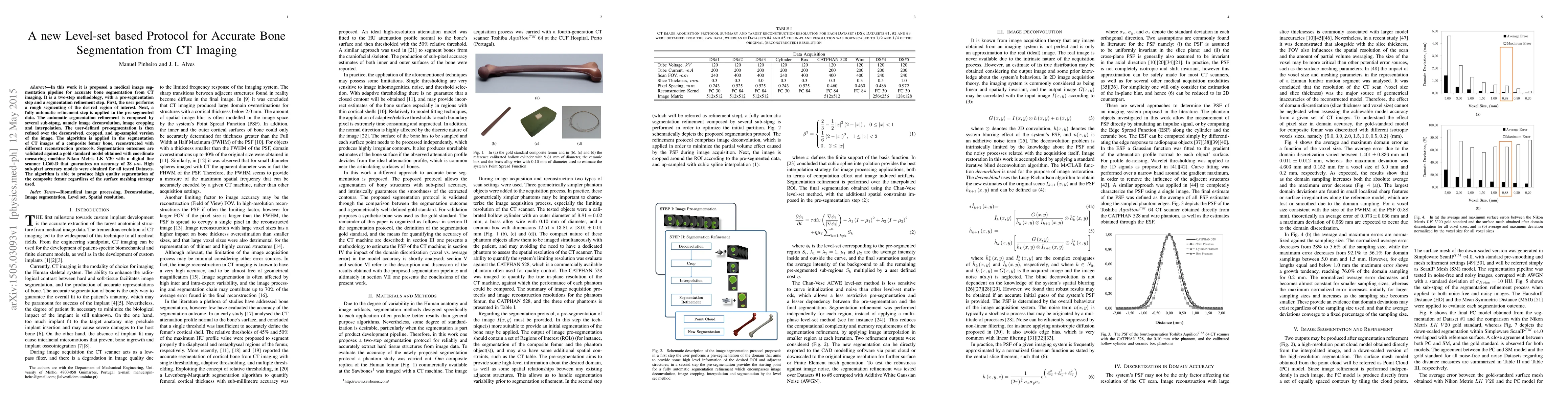 This paper proposes a two-step level-set based protocol for accurate bone segmentation from CT imaging, combining user-defined pre-segmentation with fully automatic refinement. The refined segmentation achieves high sub-pixel accuracy validated against a gold standard model, demonstrating effective bone segmentation across different reconstruction protocols.