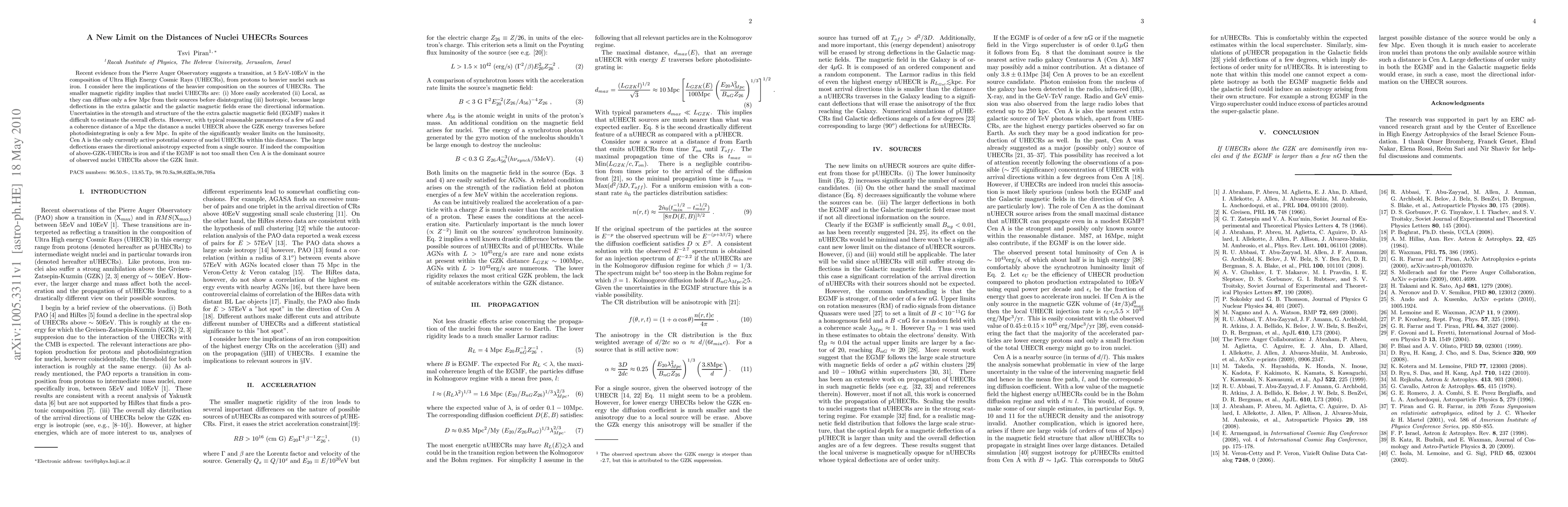 Recent evidence from the Pierre Auger Observatory suggests a transition, at 5 EeV-10EeV in the composition of Ultra High Energy Cosmic Rays (UHECRs), from protons to heavier nuclei such as iron. I consider here the implications of the heavier composition on the sources of UHECRs. The smaller magnetic rigidity implies that nuclei UHECRs are: (i) More easily accelerated (ii) Local, as they can diffuse only a few Mpc from their sources before disintegrating (iii) Isotropic, because large deflections in the extra galactic and the galactic magnetic fields erase the directional information. Uncertainties in the strength and structure of the the extra galactic magnetic field (EGMF) makes it difficult to estimate the overall effects. However, with typical reasonable parameters of a few nG and a coherence distance of a Mpc the distance a nuclei UHECR above the GZK energy traverses before photodisintegrating is only a few Mpc. In spite of the significantly weaker limits on the luminosity, Cen A is the only currently active potential source of nuclei UHECRs within this distance. The large deflections erases the directional anisotropy expected from a single source. If indeed the composition of above-GZK-UHECRs is iron and if the EGMF is not too small then Cen A is the dominant source of observed nuclei UHECRs above the GZK limit.