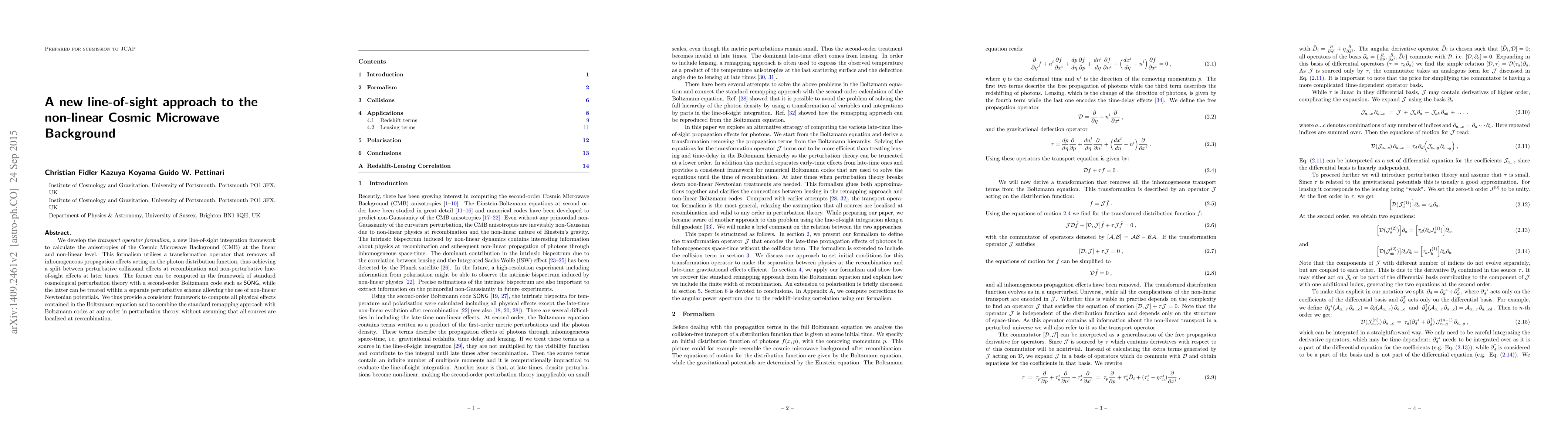 We develop the transport operator formalism, a new line-of-sight integration framework to calculate the anisotropies of the Cosmic Microwave Background (CMB) at the linear and non-linear level. This formalism utilises a transformation operator that removes all inhomogeneous propagation effects acting on the photon distribution function, thus achieving a split between perturbative collisional effects at recombination and non-perturbative line-of-sight effects at later times. The former can be computed in the framework of standard cosmological perturbation theory with a second-order Boltzmann code such as SONG, while the latter can be treated within a separate perturbative scheme allowing the use of non-linear Newtonian potentials. We thus provide a consistent framework to compute all physical effects contained in the Boltzmann equation and to combine the standard remapping approach with Boltzmann codes at any order in perturbation theory, without assuming that all sources are localised at recombination.