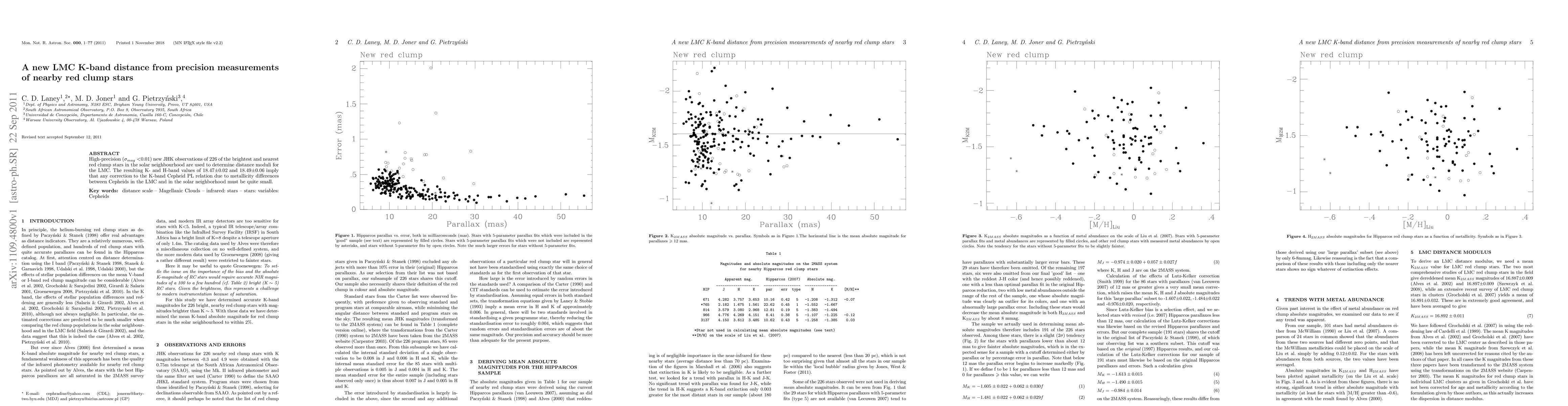 This study uses high-precision JHK observations of nearby red clump stars to determine a new K-band distance to the Large Magellanic Cloud (LMC), yielding a distance modulus of 18.47±0.02. The results suggest minimal correction is needed for metallicity differences affecting the K-band Cepheid period-luminosity relation.