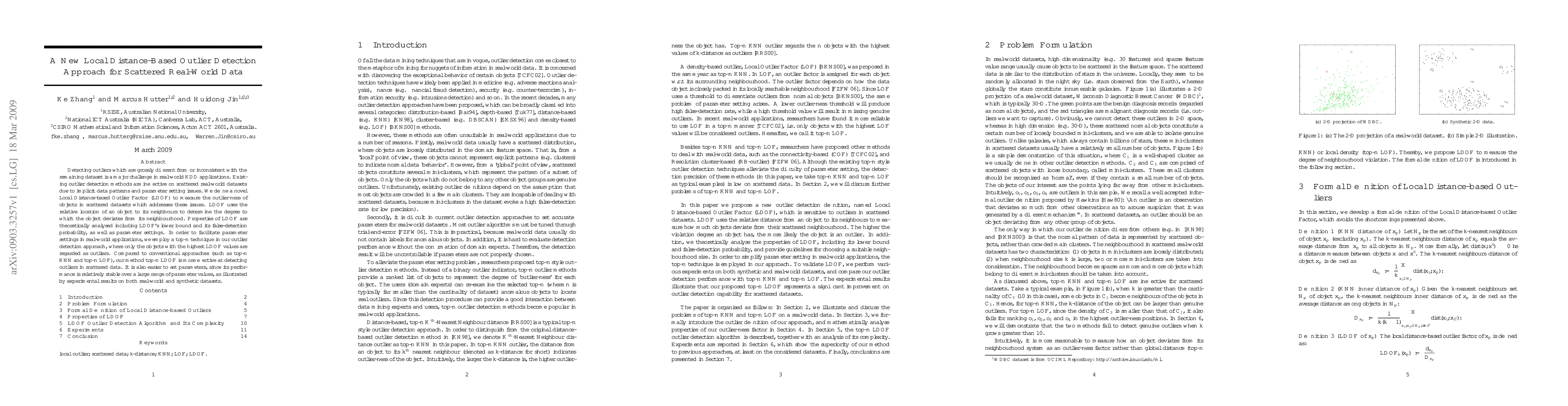 This paper introduces a new Local Distance-based Outlier Factor (LDOF) method for detecting outliers in scattered real-world datasets, addressing limitations of existing methods. The proposed top-n LDOF approach is shown to be more effective and parameter-stable compared to conventional methods.