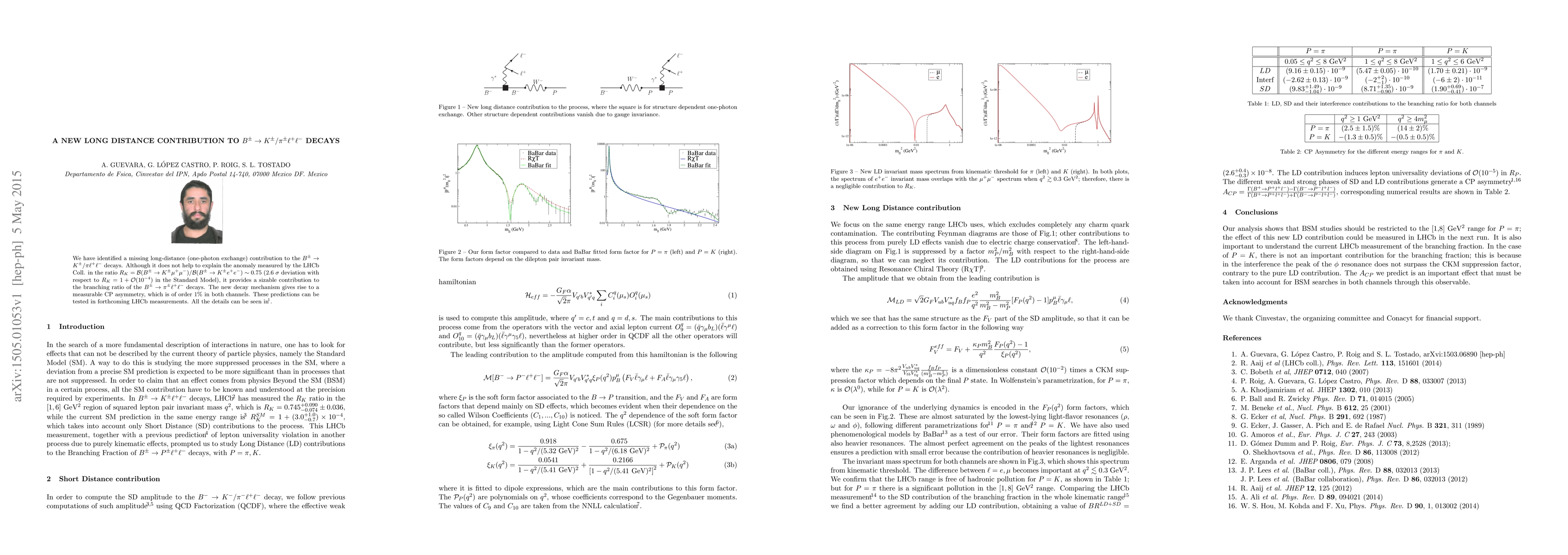 Researchers have identified a new long-distance contribution to B+ decay into K+, pi+, and lepton pairs, providing a sizable prediction for future LHCb measurements with a measurable CP asymmetry.
