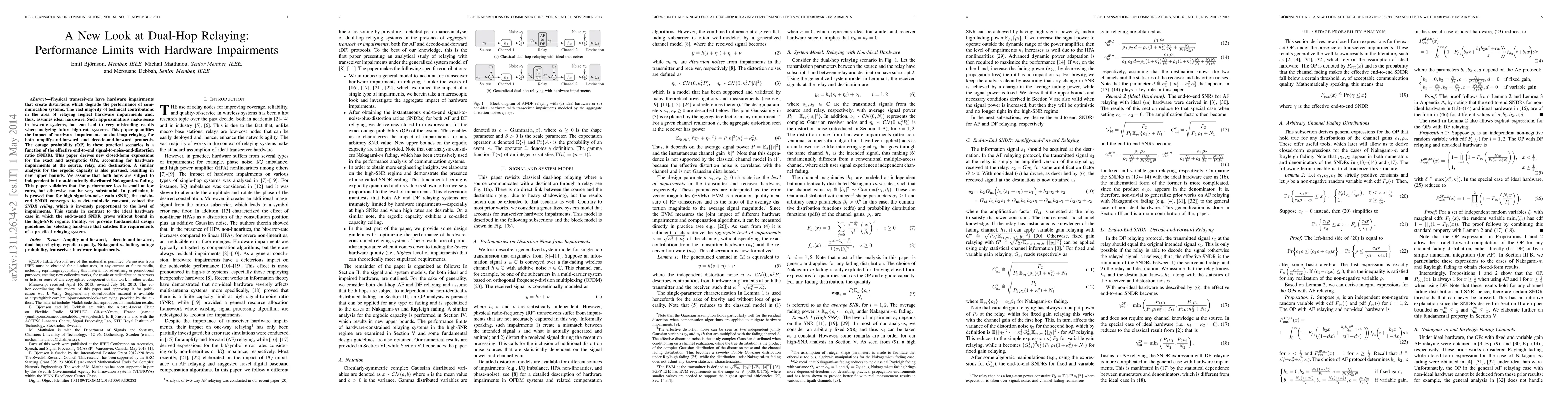 This paper investigates the impact of hardware impairments on dual-hop relaying systems, finding that performance loss is small at low rates but substantial otherwise, with a new concept of SNDR ceiling in high-SNR regimes.