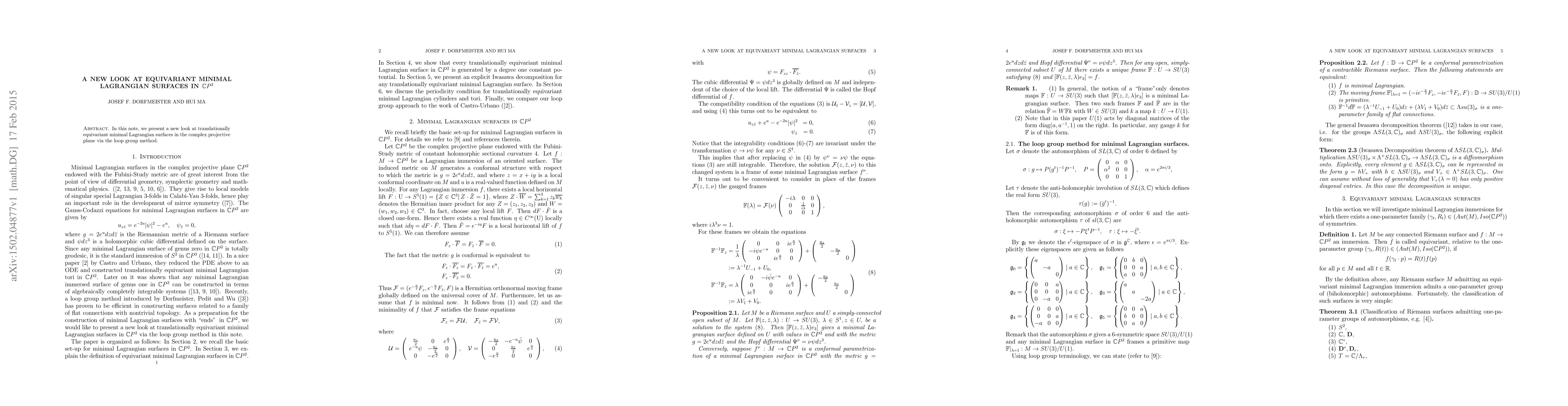 Summary: This paper explores translationally equivariant minimal Lagrangian surfaces in the complex projective plane using the loop group method, offering a novel perspective on the subject. The approach provides new insights into the geometric properties of these surfaces.