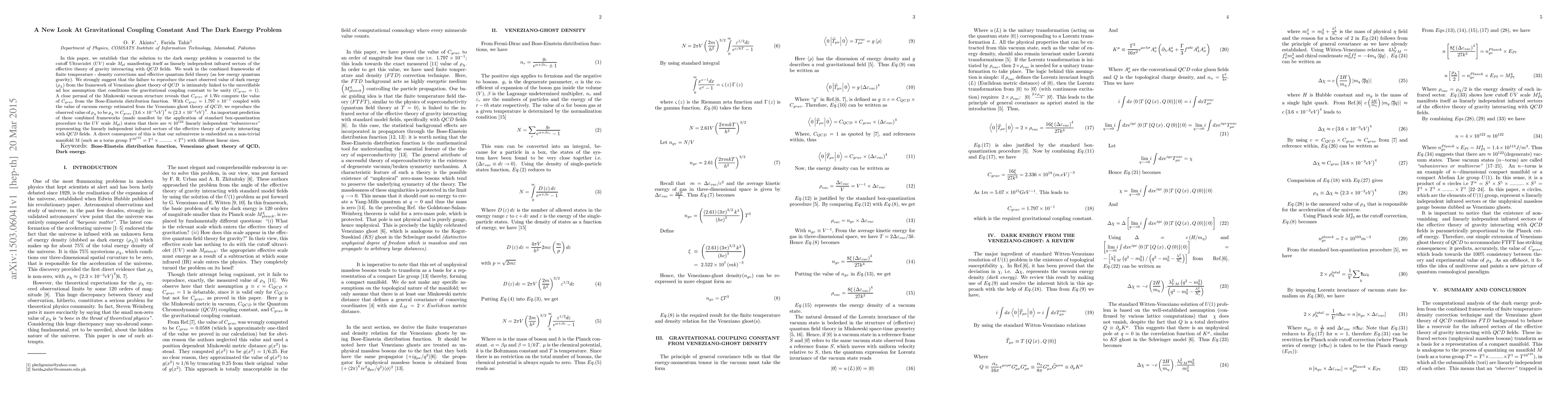 In this paper, we establish that the solution to the dark energy problem is connected to the cutoff Ultraviolet scale manifesting itself as linearly independent infrared sectors of the effective theory of gravity interacting with QCD fields. We work in the combined frameworks of finite temperature-density corrections and effective quantum field theory (as low energy quantum gravity). We strongly suggest that the failure to reproduce the exact observed value of dark energy from the framework of Veneziano ghost theory of QCD is intimately linked to the unverifiable ad hoc assumption that conditions the gravitational coupling constant to be unity C Gravity is equal to 0ne. A close perusal of the Minkowski vacuum structure reveals that C Gravity is not equal to one. We compute the value of C Gravity from the Bose-Einstein distribution function. With this value of C Gravity coupled with the value of vacuum energy estimated from the Veneziano ghost theory of QCD, we reproduce the observed value of row lambda to be row lambda congruent to C Gravity. An important prediction of these combined frameworks (made manifest by the application of standard box-quantization procedure to the UV scale Max Planck states that there are to ten raise to power one hundred and twenty two linearly independent "subuniverses" representing the linearly independent infrared sectors of the effective theory of gravity interacting with QCD fields. A direct consequence of this is that our subuniverse is embedded on a non-trivial manifold M such as a torus group T raise to power ten raise to power one hundred and twenty two with different linear sizes.