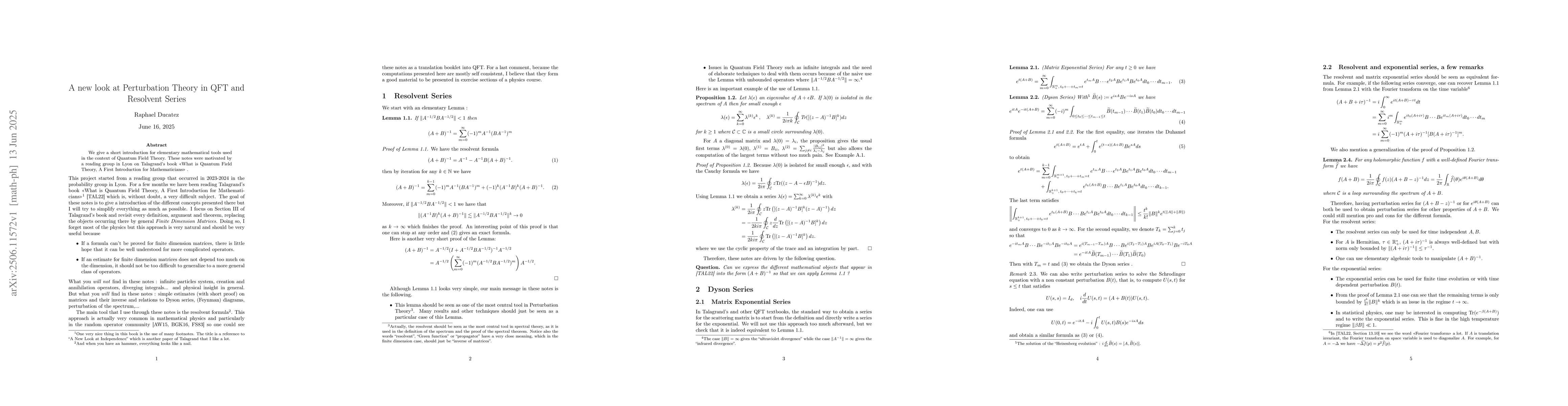 We give a short introduction for elementary mathematical tools used in the context of Quantum Field Theory. These notes were motivated by a reading group in Lyon on Talagrand's book {\guillemotleft}What is Quantum Field Theory, A First Introduction for Mathematicians{\guillemotright}.