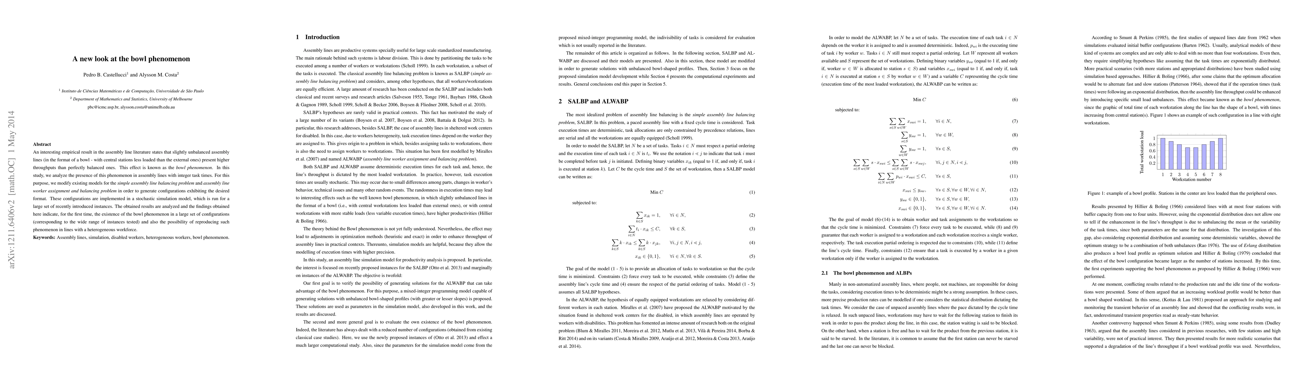 An interesting empirical result in the assembly line literature states that slightly unbalanced assembly lines (in the format of a bowl - with central stations less loaded than the external ones) present higher throughputs than perfectly balanced ones. This effect is known as the bowl phenomenon. In this study, we analyze the presence of this phenomenon in assembly lines with heterogeneous workers (most of them, workers with disabilities). For this purpose, we modify an existing model for the assembly line worker assignment and balancing problem in order to generate configurations exhibiting the desired format. These configurations are implemented in a stochastic simulation model and the obtained results are analyzed. The findings obtained here confirm the existence of the bowl phenomenon in such situations and contributes to deepen our knowledge in this empirical phenomenon.