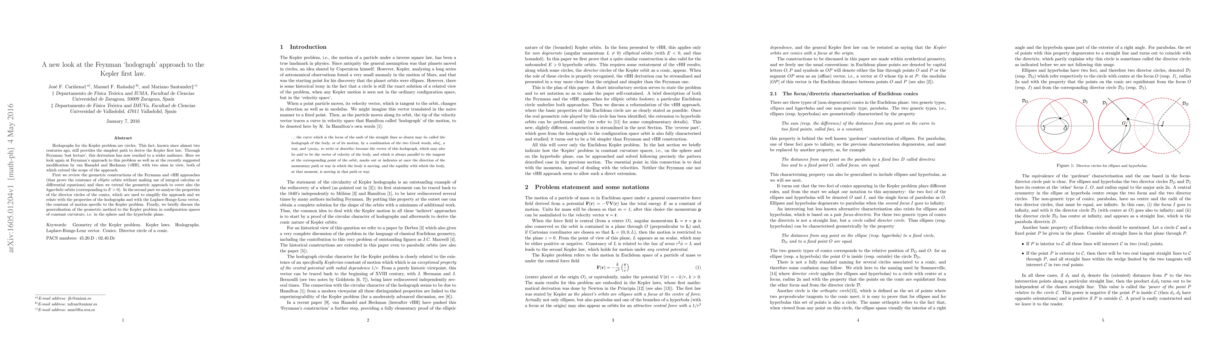 Hodographs for the Kepler problem are circles. This fact, known since almost two centuries ago, still provides the simplest path to derive the Kepler first law. Through Feynman `lost lecture', this derivation has now reached to a wider audience. Here we look again at Feynman's approach to this problem as well as at the recently suggested modification by van Haandel and Heckman (vHH), with two aims in view, both of which extend the scope of the approach. First we review the geometric constructions of the Feynman and vHH approaches (that prove the existence of {\itshape elliptic} orbits without making use of integral calculus or differential equations) and then we extend the geometric approach to cover also the {\itshape hyperbolic} orbits (corresponding to $E>0$). In the second part we analyse the properties of the director circles of the conics, which are used to simplify the approach and we relate with the properties of the hodographs and with the Laplace-Runge-Lenz vector, the constant of motion specific to the Kepler problem. Finally, we briefly discuss the generalisation of the geometric method to the Kepler problem in configuration spaces of constant curvature, i.e. in the sphere and the hyperbolic plane.