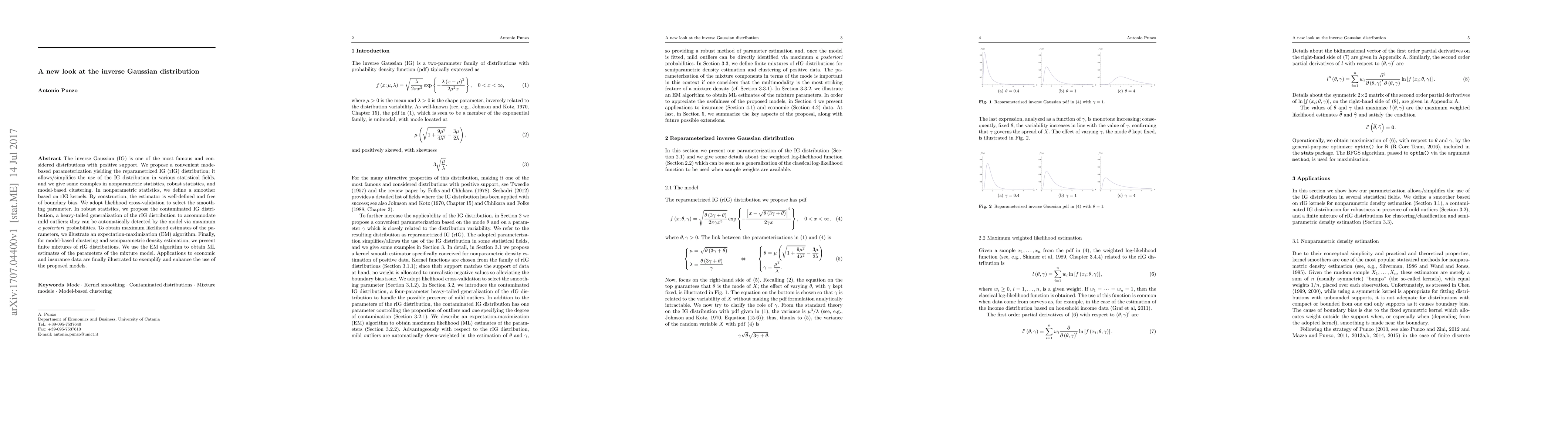 The inverse Gaussian (IG) is one of the most famous and considered distributions with positive support. We propose a convenient mode-based parameterization yielding the reparametrized IG (rIG) distribution; it allows/simplifies the use of the IG distribution in various statistical fields, and we give some examples in nonparametric statistics, robust statistics, and model-based clustering. In nonparametric statistics, we define a smoother based on rIG kernels. By construction, the estimator is well-defined and free of boundary bias. We adopt likelihood cross-validation to select the smoothing parameter. In robust statistics, we propose the contaminated IG distribution, a heavy-tailed generalization of the rIG distribution to accommodate mild outliers; they can be automatically detected by the model via maximum a posteriori probabilities. To obtain maximum likelihood estimates of the parameters, we illustrate an expectation-maximization (EM) algorithm. Finally, for model-based clustering and semiparametric density estimation, we present finite mixtures of rIG distributions. We use the EM algorithm to obtain ML estimates of the parameters of the mixture model. Applications to economic and insurance data are finally illustrated to exemplify and enhance the use of the proposed models.