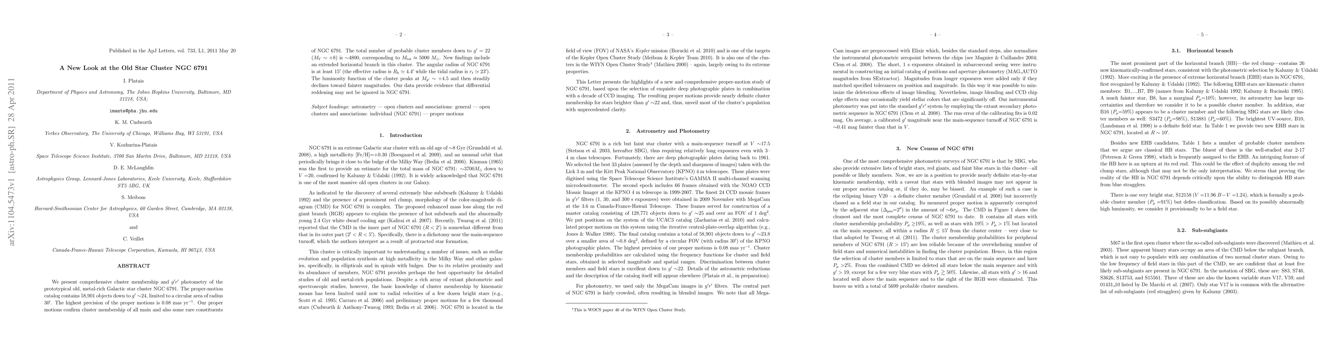 Researchers studied the star cluster NGC 6791, discovering an extended horizontal branch, a luminosity function that declines with fainter magnitudes, and evidence of differential reddening.