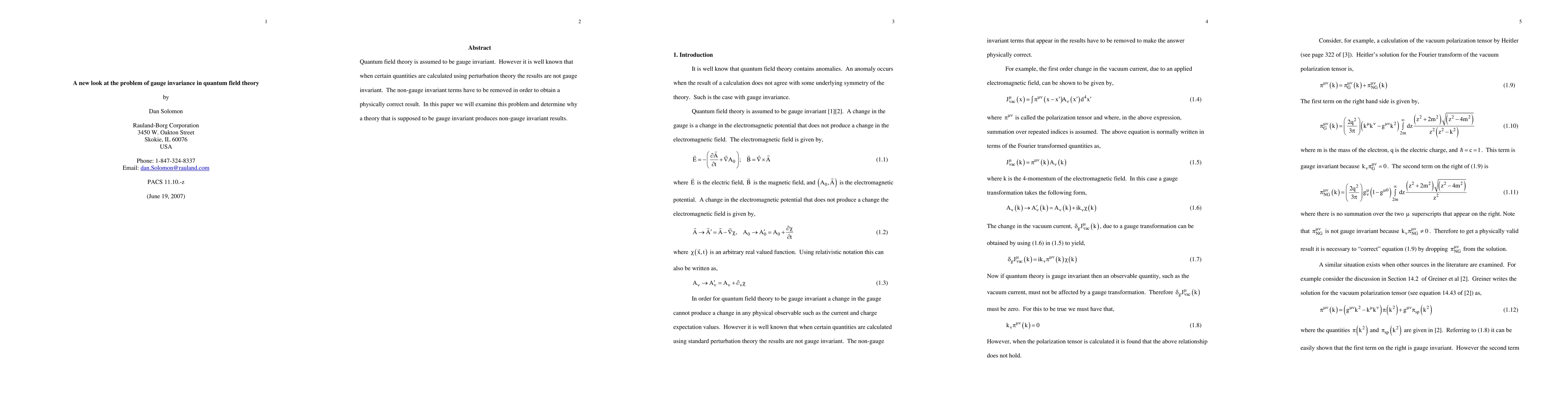 This paper investigates the discrepancy between gauge invariance in quantum field theory and the non-gauge invariant results obtained via perturbation calculations, aiming to identify the underlying reasons for this inconsistency.
