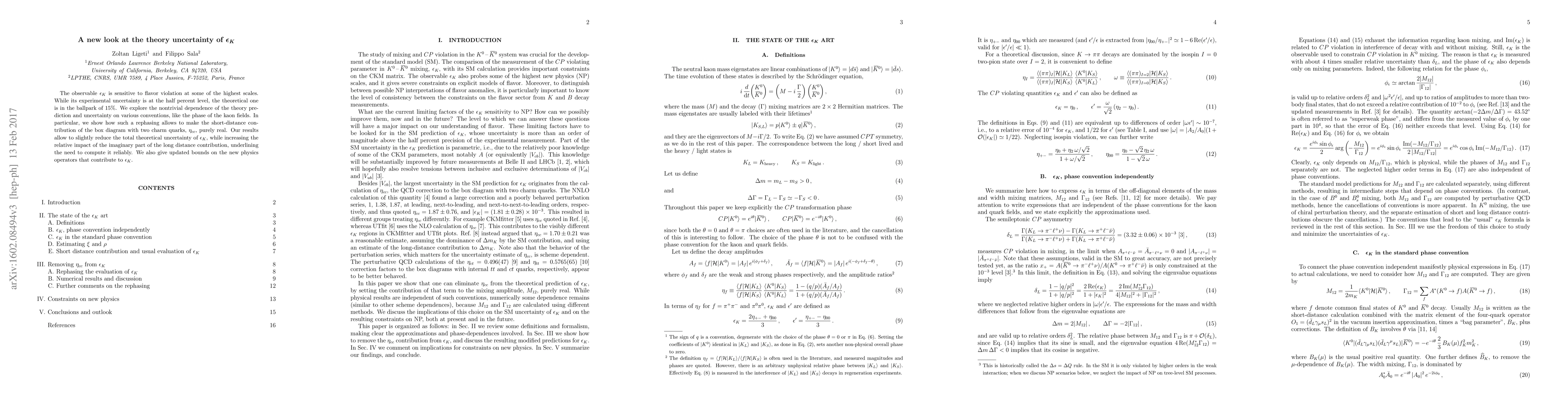 The observable epsilon_K is sensitive to flavor violation at some of the highest scales. While its experimental uncertainty is at the half percent level, the theoretical one is in the ballpark of 15%. We explore the nontrivial dependence of the theory prediction and uncertainty on various conventions, like the phase of the kaon fields. In particular, we show how such a rephasing allows to make the short-distance contribution of the box diagram with two charm quarks, eta_cc, purely real. Our results allow to slightly reduce the total theoretical uncertainty of epsilon_K, while increasing the relative impact of the imaginary part of the long distance contribution, underlining the need to compute it reliably. We also give updated bounds on the new physics operators that contribute to epsilon_K.