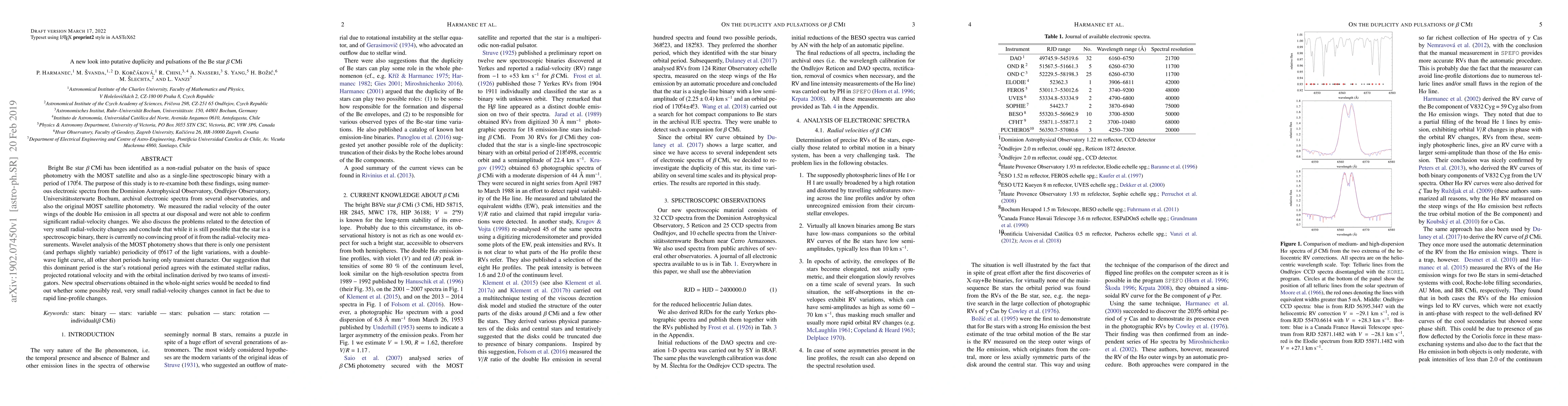 This study re-examines the pulsation and duplicity of Be star beta CMi using electronic spectra and MOST satellite photometry data, concluding that while it may be a spectroscopic binary, there is currently no convincing proof from radial-velocity measurements.