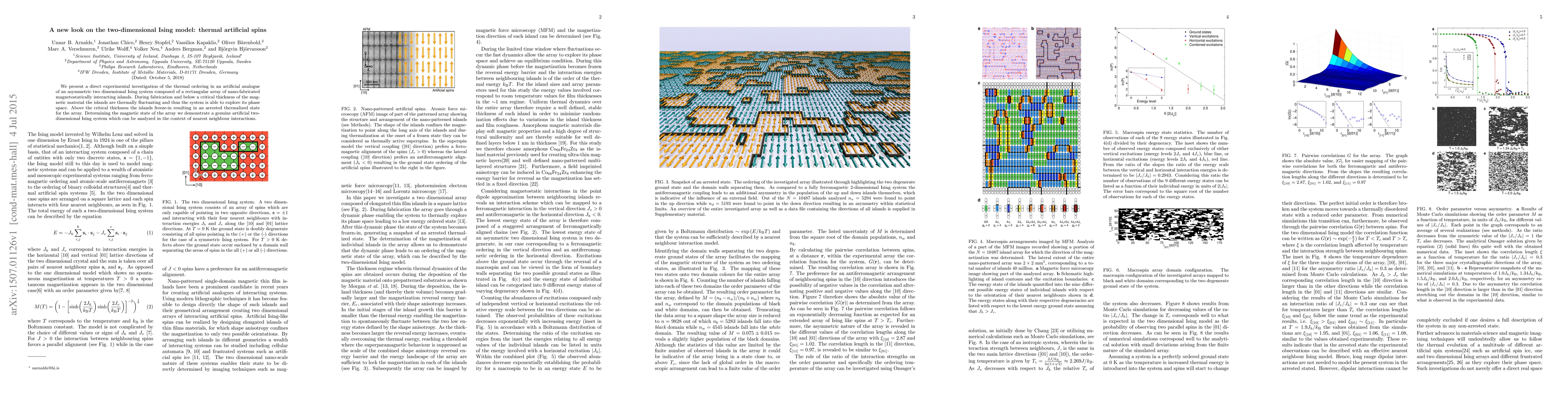 This paper investigates thermal ordering in a nano-fabricated artificial two-dimensional Ising system composed of magnetostatically interacting islands. The system exhibits genuine Ising behavior below a critical magnetic material thickness, transitioning to an arrested state upon exceeding it, allowing analysis of nearest neighbour interactions.