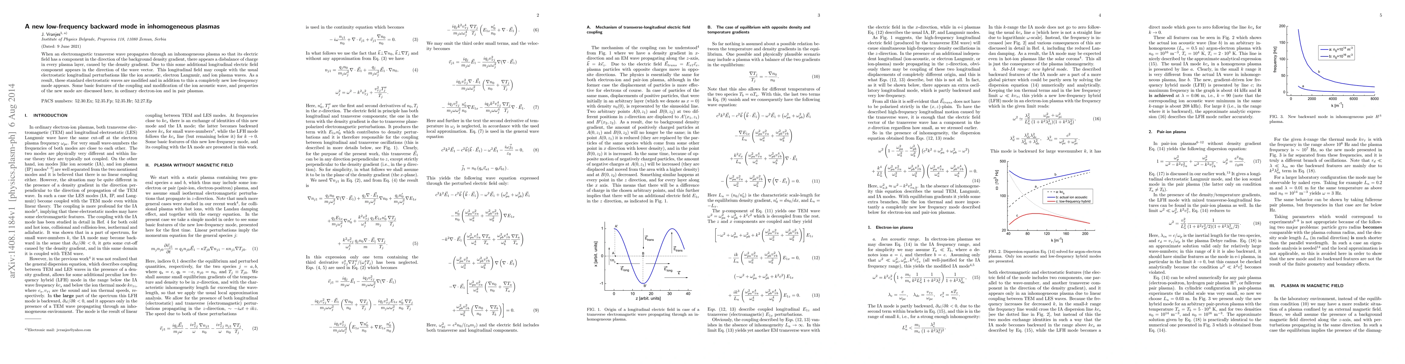 This paper explores the emergence of a novel low-frequency backward mode in inhomogeneous plasmas when electromagnetic waves encounter density gradients, leading to modified standard electrostatic waves and the appearance of a new longitudinal electric field component. The study discusses the coupling effects and properties of this new mode in both electron-ion and pair plasmas.