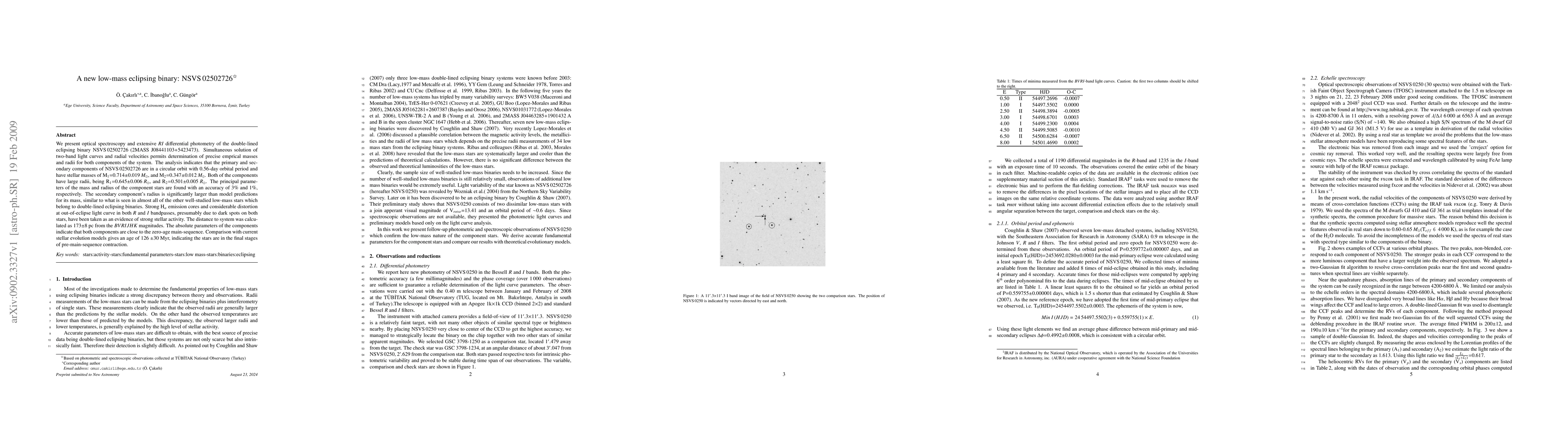 We present optical spectroscopy and extensive $RI$ differential photometry of the double-lined eclipsing binary NSVS 02502726 (2MASS J08441103+5423473). Simultaneous solution of two-band light curves and radial velocities permits determination of precise emprical masses and radii for both components of the system. The analysis indicates that the primary and secondary components of NSVS 02502726 are in a circular orbit with 0.56-day orbital period and have stellar masses of M$_1$=0.714$\pm$0.019 \Msun, and M$_2$=0.347$\pm$0.012 \Msun. Both of the components have large radii, being R$_1$=0.67$\pm$0.01 \Rsun, and R$_2$=0.76$\pm$0.01 \Rsun. The principal parameters of the mass and radius of the component stars are found with an accuracy of 3% and 1%, respectively. The secondary component's radius is significantly larger than model predictions for its mass, similar to what is seen in almost all of the other well-studied low-mass stars which belong to double-lined eclipsing binaries. Strong H$_{\alpha}$ emission cores and considerable distortion at out-of-eclipse light curve in both $R$ and $I$ bandpasses, presumably due to dark spots on both stars, have been taken as an evidence of strong stellar activity. The distance to system was calculated as 173$\pm$8 pc from the $BVRIJHK$ magnitudes. The absolute parameters of the components indicate that both components are close to the zero-age main-sequence. Comparison with current stellar evolution models gives an age of 126 $\pm$30 Myr, indicating the stars are in the final stages of pre-main-sequence contraction.