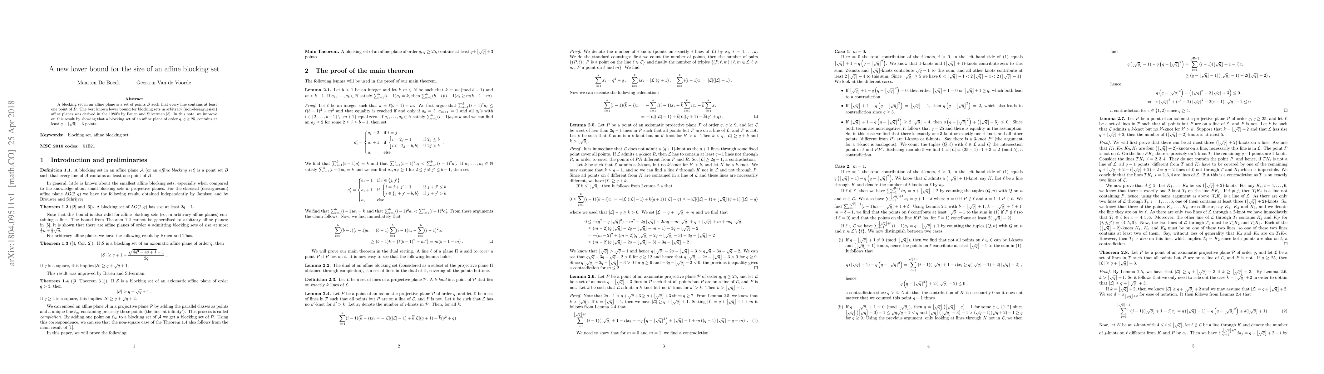 Researchers improved the known lower bound for the size of a blocking set in affine planes, showing that sets of points with at least $q+loor oot{q}loor+3$ points are necessary to cover every line.