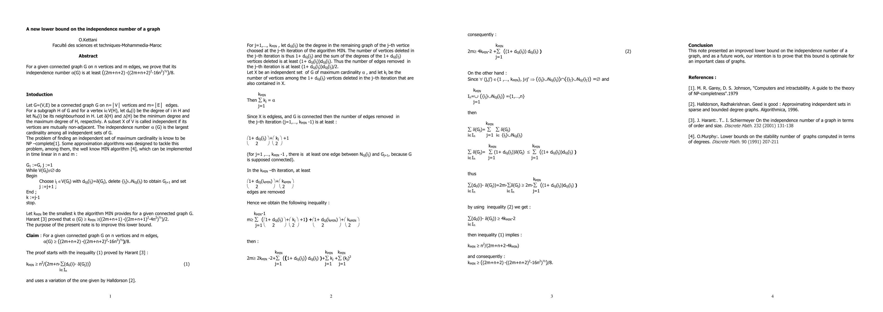 For a given connected graph G on n vertices and m edges, we prove that its independence number is at least (2m+n+2-sqrt(sqr(2m+n+2)-16sqr(n)))/8.