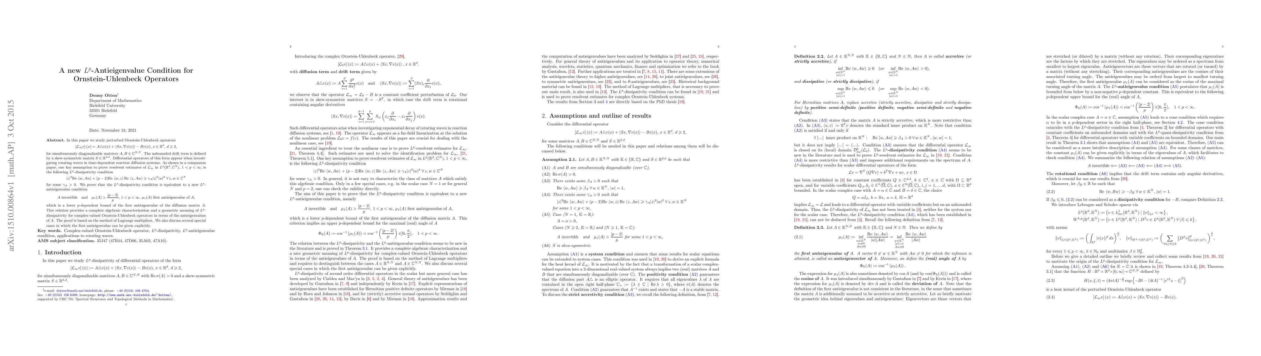 In this paper we study perturbed Ornstein-Uhlenbeck operators \begin{align*} \left[ \mathcal{L}_{\infty} v\right](x) = A\triangle v(x) + \left\langle Sx,\nabla v(x)\right\rangle-B v(x),\,x\in\mathbb{R}^d,\,d\geqslant 2, \end{align*} for simultaneously diagonalizable matrices $A,B\in\mathbb{C}^{N,N}$. The unbounded drift term is defined by a skew-symmetric matrix $S\in\mathbb{R}^{d,d}$. Differential operators of this form appear when investigating rotating waves in time-dependent reaction diffusion systems. As shown in a companion paper, one key assumption to prove resolvent estimates of $\mathcal{L}_{\infty}$ in $L^p(\mathbb{R}^d,\mathbb{C}^N)$, $1