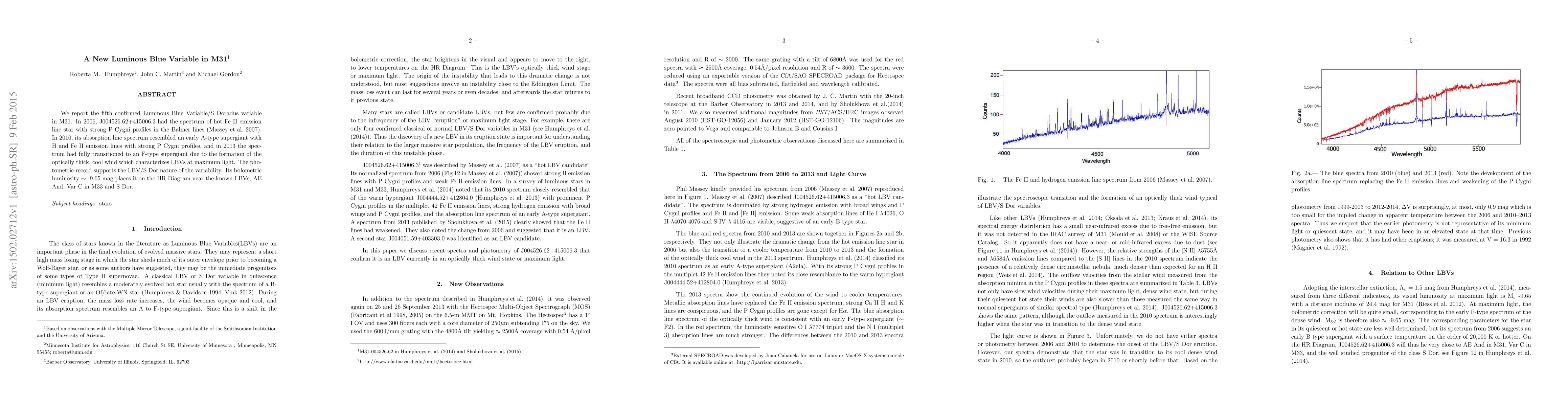 A new Luminous Blue Variable (LBV) has been identified in M31 galaxy, with a bolometric luminosity similar to other known LBVs, indicating it is a star undergoing extreme variability.