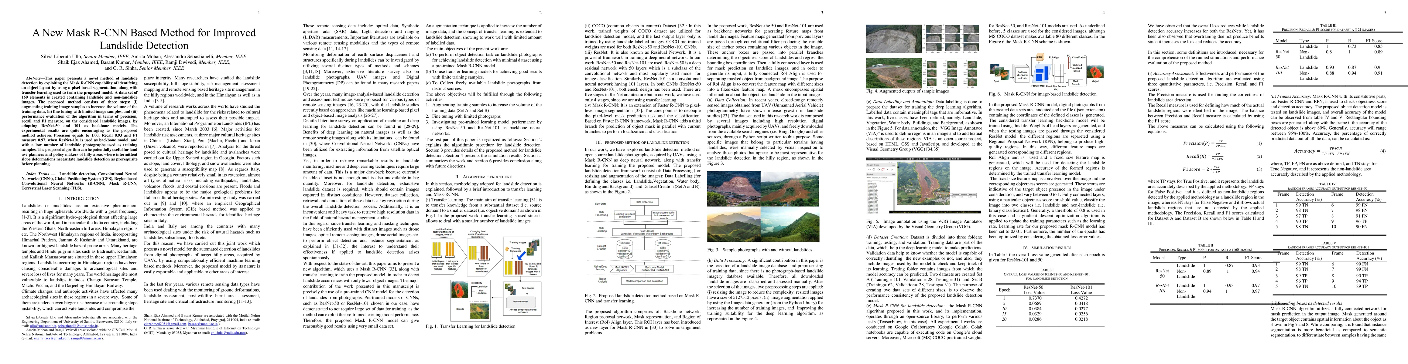 This paper introduces a Mask R-CNN based method for landslide detection, leveraging pixel-based segmentation and transfer learning. Experimental results show high precision, recall, and F1 score, indicating its potential utility for land use planning in hilly regions.