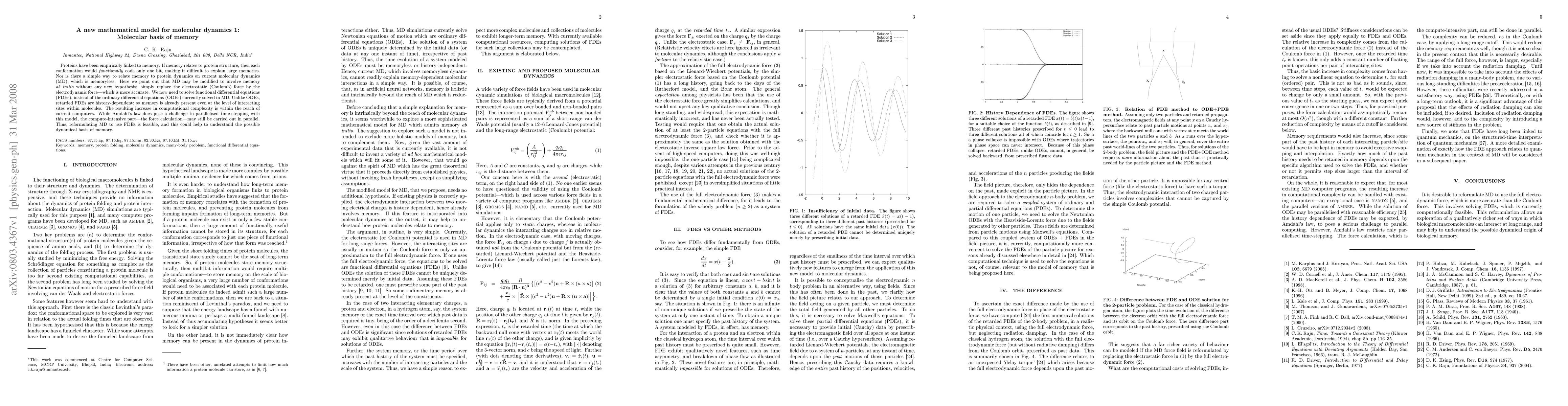 Proteins have been empirically linked to memory. If memory relates to protein structure, then each conformation would_functionally_ code only one bit, making it difficult to explain large memories. Nor is there a simple way to relate memory to protein dynamics on current molecular dynamics (MD), which is memoryless. Here we point out that MD may be modified to involve memory ab initio without any new hypothesis: simply replace the electrostatic (Coulomb) force by the electrodynamic force--which is more accurate. We now need to solve functional differential equations (FDEs), instead of the ordinary differential equations (ODEs) currently solved in MD. Unlike ODEs, retarded FDEs are history-dependent: so memory is already present even at the level of interacting sites within molecules. The resulting increase in computational complexity is within the reach of current computers. While Amdahl's law does pose a challenge to parallelised time-stepping with this model, the compute-intensive part--the force calculation--may still be carried out in parallel. Thus, reformulating MD to use FDEs is feasible, and this could help to understand the possible dynamical basis of memory.