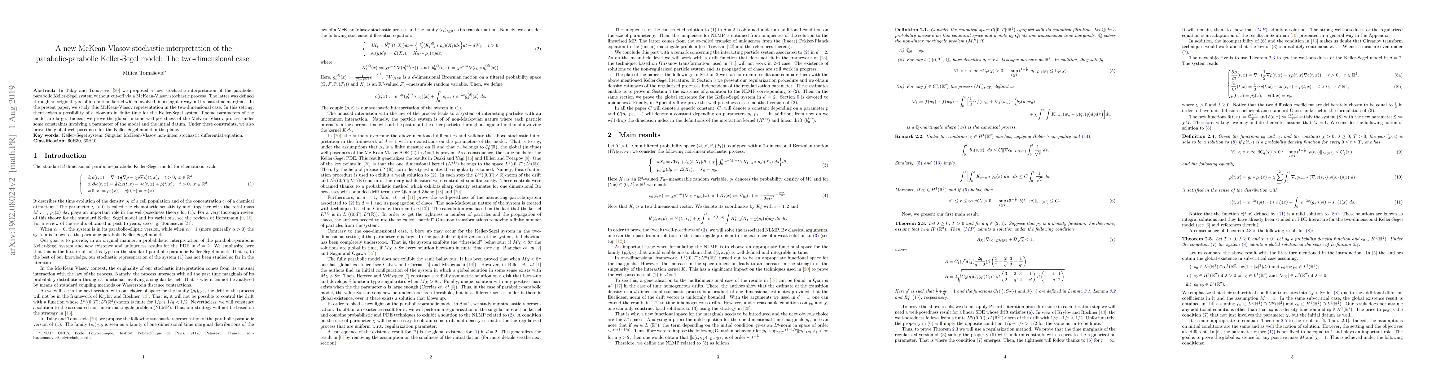 This paper explores a new McKean-Vlasov stochastic interpretation of the two-dimensional parabolic-parabolic Keller-Segel model, proving well-posedness and global existence under specific constraints, combining PDE and stochastic analysis techniques.