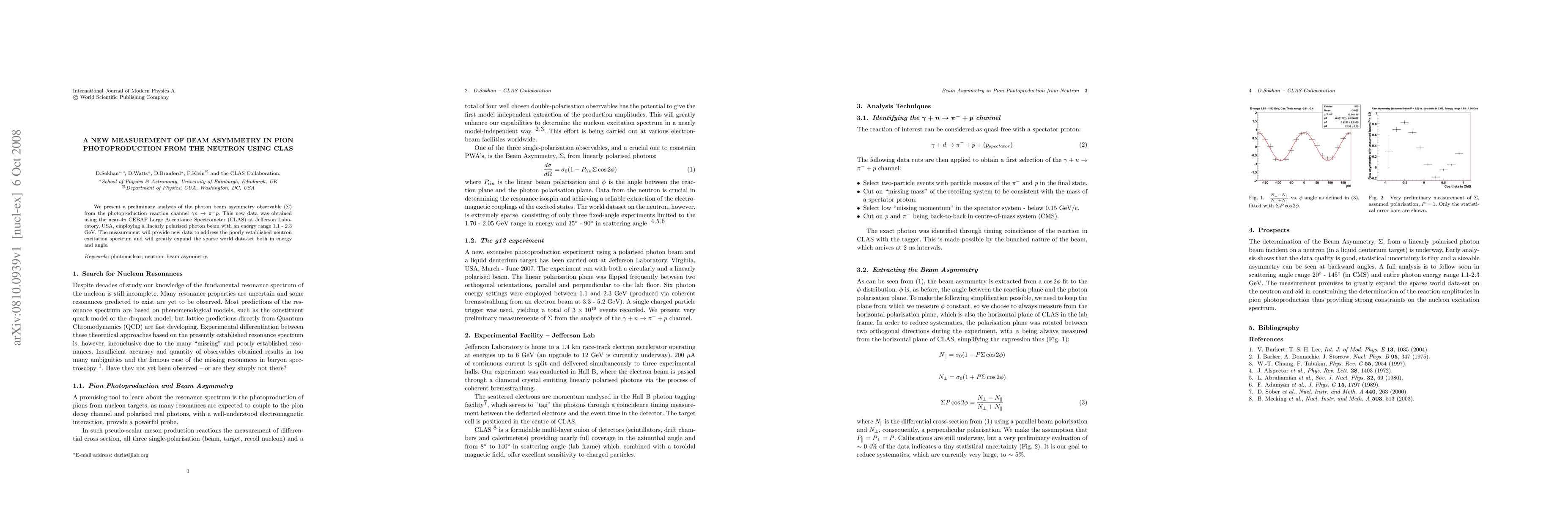 We present a preliminary analysis of the photon beam asymmetry observable (Sigma) from the photoproduction reaction channel gamma+ n -> p + pi-. This new data was obtained using the near-4pi CEBAF Large Acceptance Spectrometer (CLAS) at Jefferson Laboratory, USA, employing a linearly polarised photon beam with an energy range 1.1 - 2.3 GeV. The measurement will provide new data to address the poorly established neutron excitation spectrum and will greatly expand the sparse world data-set both in energy and angle.