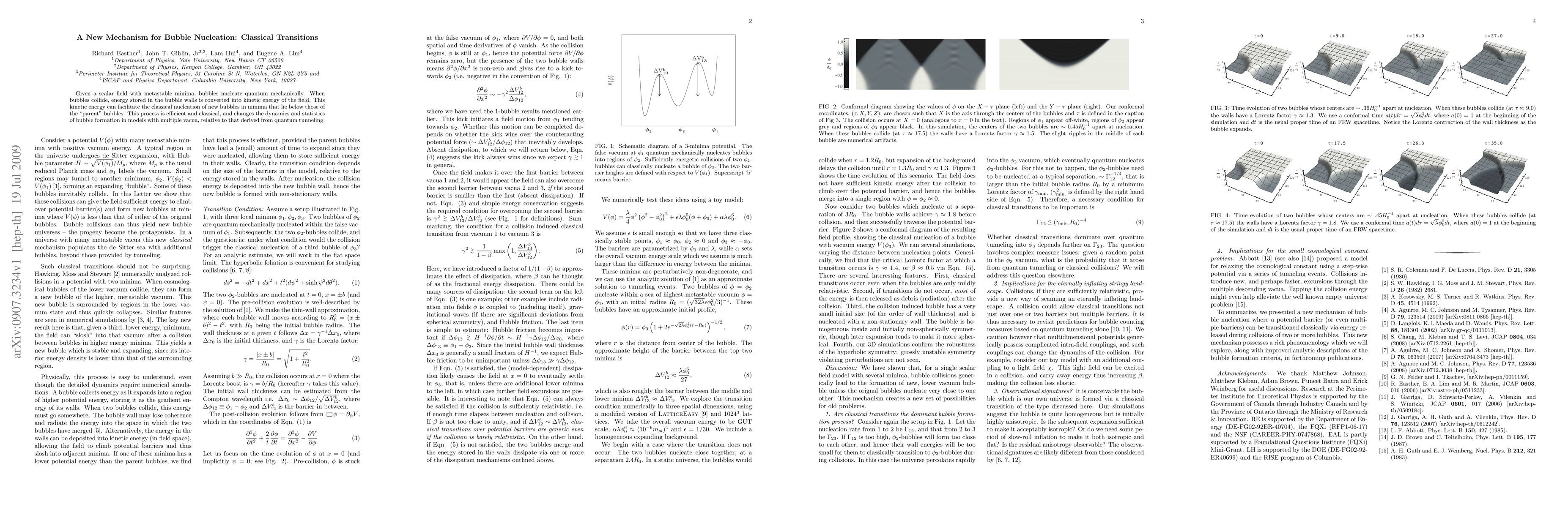 This paper proposes a new classical mechanism for bubble nucleation in scalar fields, where kinetic energy from colliding bubbles can induce the formation of new bubbles in lower energy minima, altering the dynamics and statistics of bubble formation compared to quantum tunneling.