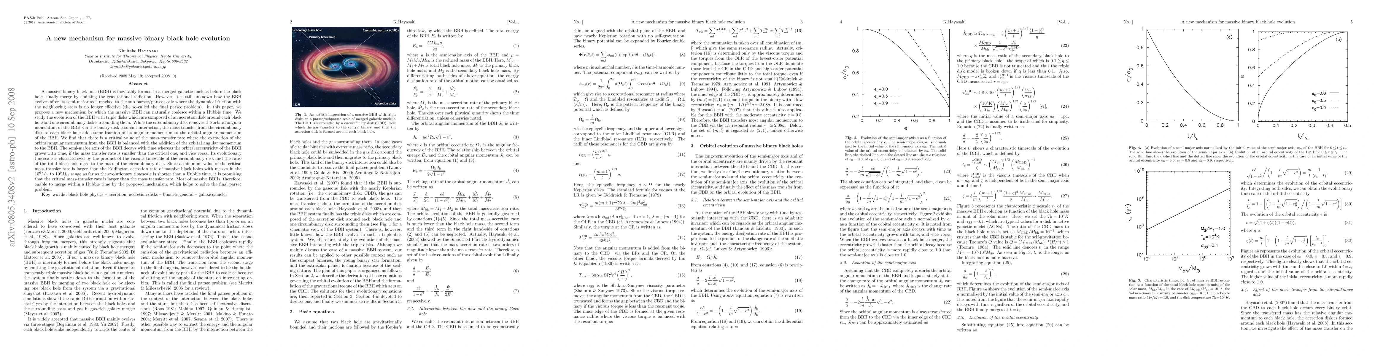 This research proposes a new mechanism for massive binary black holes (BBHs) to merge within a Hubble time, addressing the 'final parsec problem'. The mechanism involves triple disks: accretion disks around each black hole and a circumbinary disk surrounding them. Through binary-disk resonant interaction and mass transfer, the BBH's semi-major axis and orbital eccentricity evolve. A critical mass-transfer rate balances angular momentum extraction and addition, allowing most massive BBHs to merge within a Hubble time.