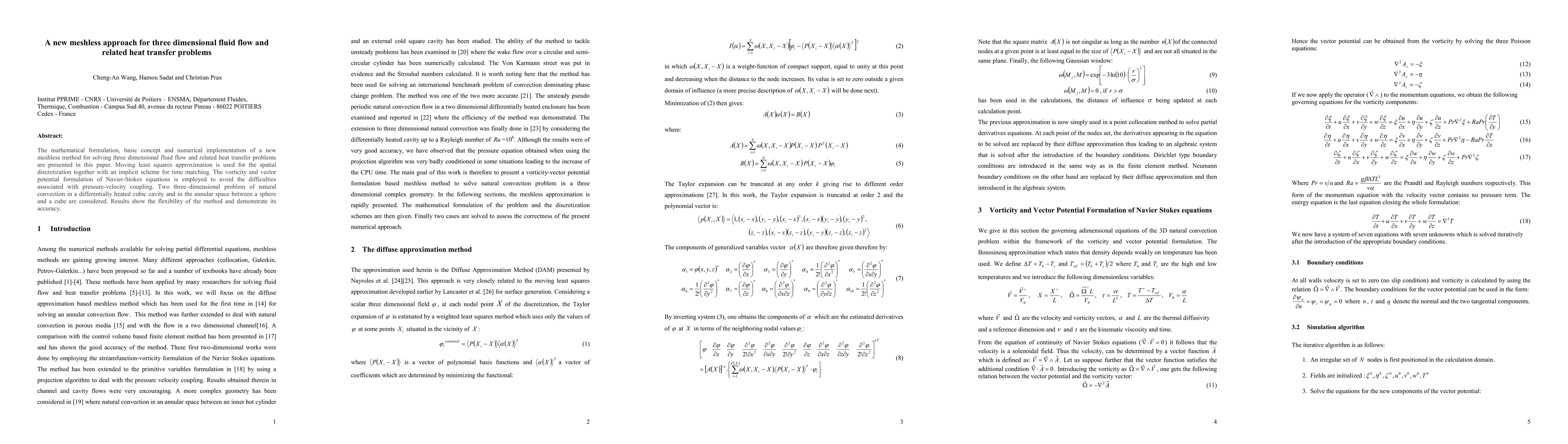 This paper introduces a new meshless method for solving three-dimensional fluid flow and heat transfer problems, utilizing moving least squares for spatial discretization and an implicit scheme for time integration. The method employs vorticity and vector potential to sidestep pressure/velocity coupling issues, validated through natural convection problems in a cubic cavity and an annular space.