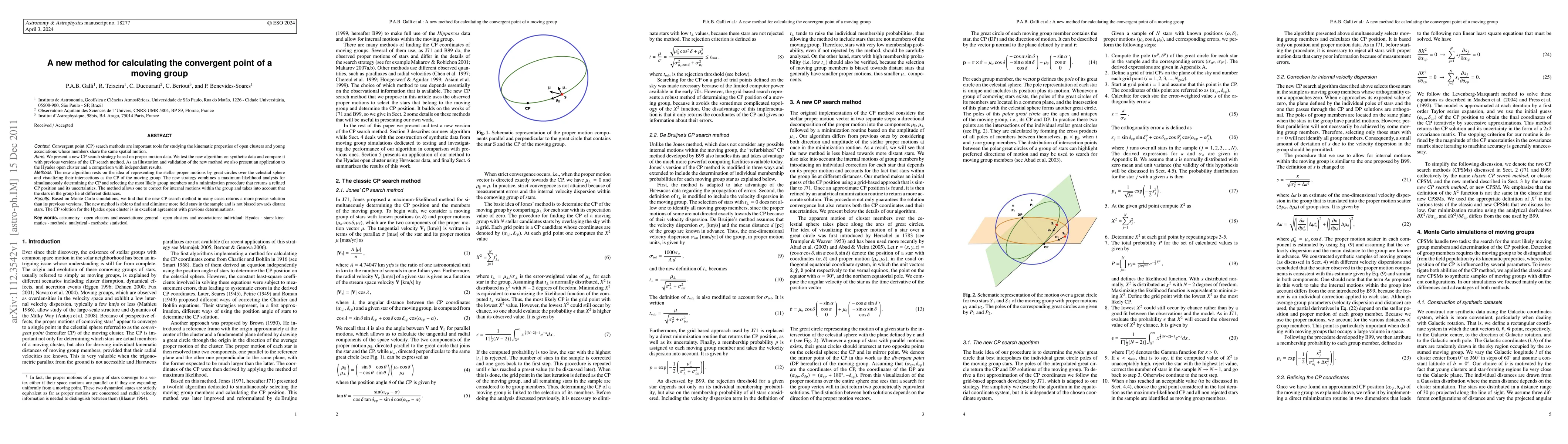 Context: Convergent point (CP) search methods are important tools for studying the kinematic properties of open clusters and young associations whose members share the same spatial motion. Aims: We present a new CP search strategy based on proper motion data. We test the new algorithm on synthetic data and compare it with previous versions of the CP search method. As an illustration and validation of the new method we also present an application to the Hyades open cluster and a comparison with independent results. Methods: The new algorithm rests on the idea of representing the stellar proper motions by great circles over the celestial sphere and visualizing their intersections as the CP of the moving group. The new strategy combines a maximum-likelihood analysis for simultaneously determining the CP and selecting the most likely group members and a minimization procedure that returns a refined CP position and its uncertainties. The method allows one to correct for internal motions within the group and takes into account that the stars in the group lie at different distances. Results: Based on Monte Carlo simulations, we find that the new CP search method in many cases returns a more precise solution than its previous versions. The new method is able to find and eliminate more field stars in the sample and is not biased towards distant stars. The CP solution for the Hyades open cluster is in excellent agreement with previous determinations.