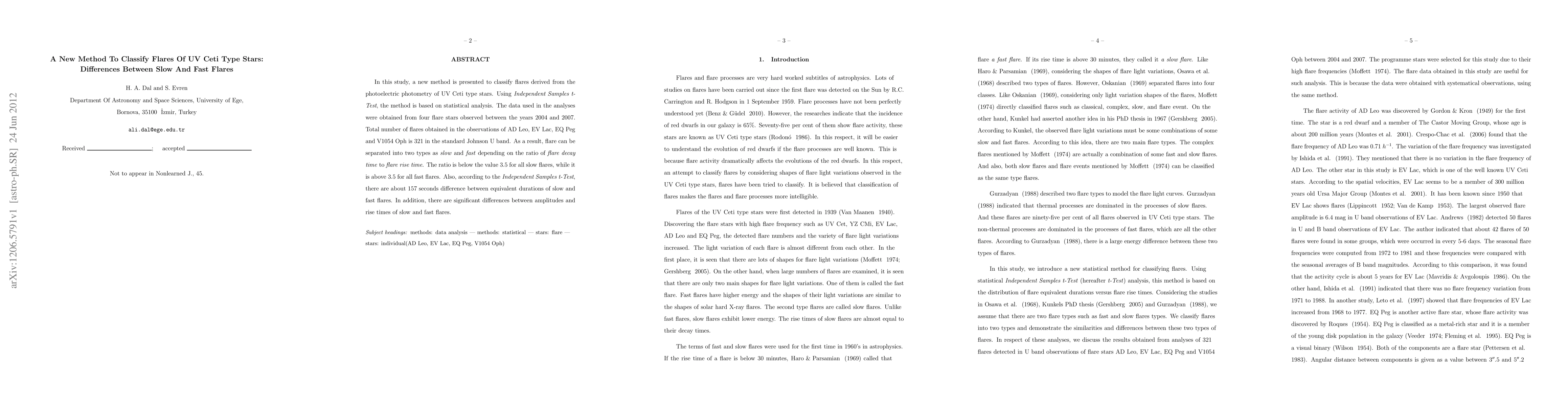 In this study, a new method is presented to classify flares derived from the photoelectric photometry of UV Ceti type stars. This method is based on statistical analyses using an independent samples t-test. The data used in analyses were obtained from four flare stars observed between 2004 and 2007. The total number of flares obtained in the observations of AD Leo, EV Lac, EQ Peg, and V1054 Oph is 321 in the standard Johnson U band. As a result flares can be separated into two types, slow and fast, depending on the ratio of flare decay time to flare rise time. The ratio is below 3.5 for all slow flares, while it is above 3.5 for all fast flares. Also, according to the independent samples t-test, there is a difference of about 157 s between equivalent durations of slow and fast flares. In addition, there are significant differences between amplitudes and rise times of slow and fast flares.
