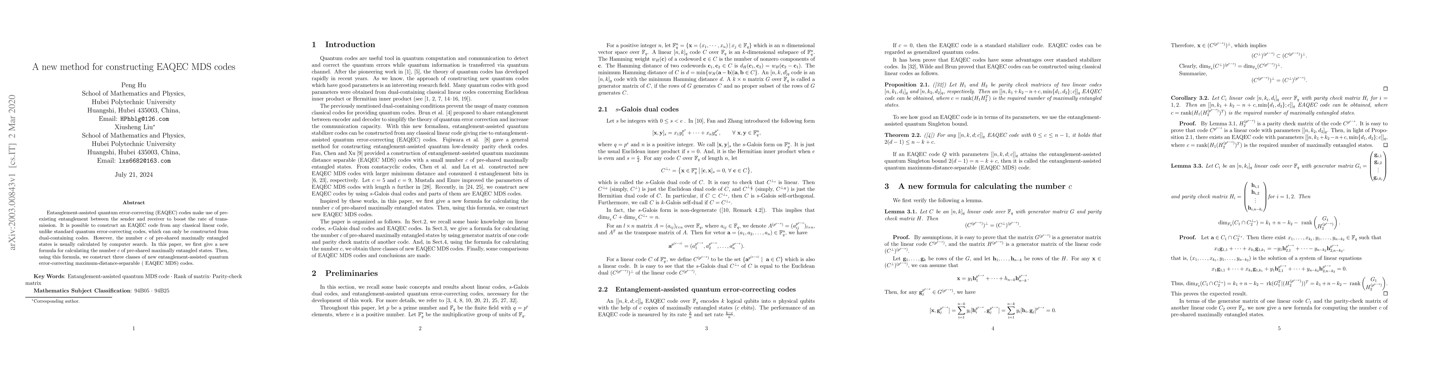 Entanglement-assisted quantum error-correcting (EAQEC) codes make use of preexisting entanglement between the sender and receiver to boost the rate of transmission. It is possible to construct an EAQEC code from any classical linear code, unlike standard quantum error-correcting codes, which can only be constructed from dual-containing codes. However, the number $c$ of pre-shared maximally entangled states is usually calculated by computer search. In this paper, we first give a new formula for calculating the number $c$ of pre-shared maximally entangled states. Then, using this formula, we construct three classes of new entanglement-assisted quantum error-correcting maximum-distance-separable ( EAQEC MDS) codes.