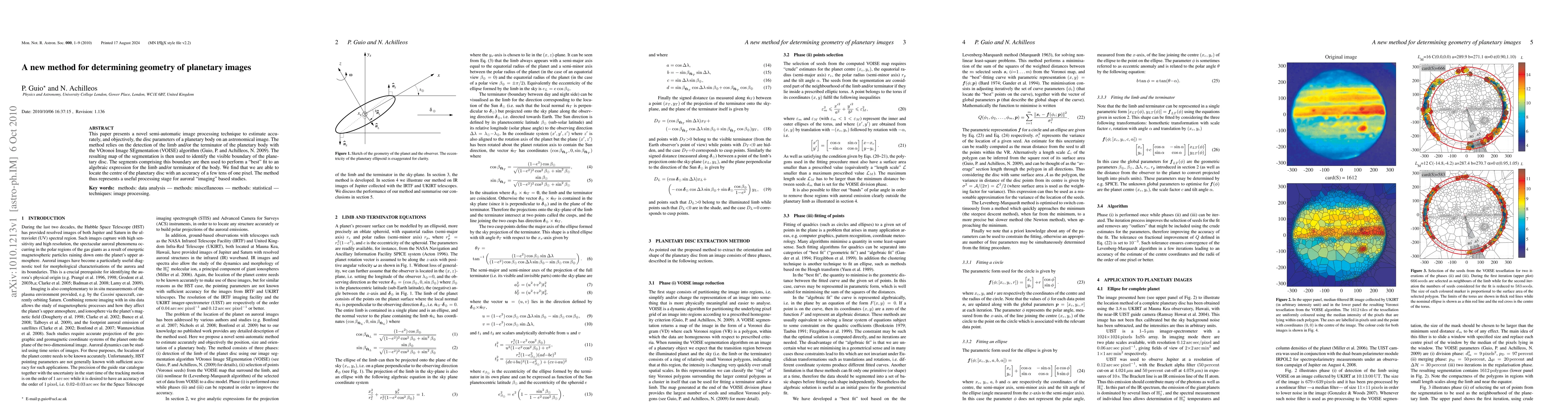 This paper presents a novel semi-automatic image processing technique to estimate accurately, and objectively, the disc parameters of a planetary body on an astronomical image. The method relies on the detection of the limb and/or the terminator of the planetary body with the VOronoi Image SEgmentation (VOISE) algorithm (Guio and Achilleos, 2009). The resulting map of the segmentation is then used to identify the visible boundary of the planetary disc. The segments comprising this boundary are then used to perform a "best" fit to an algebraic expression for the limb and/or terminator of the body. We find that we are able to locate the centre of the planetary disc with an accuracy of a few tens of one pixel. The method thus represents a useful processing stage for auroral "imaging" based studies.