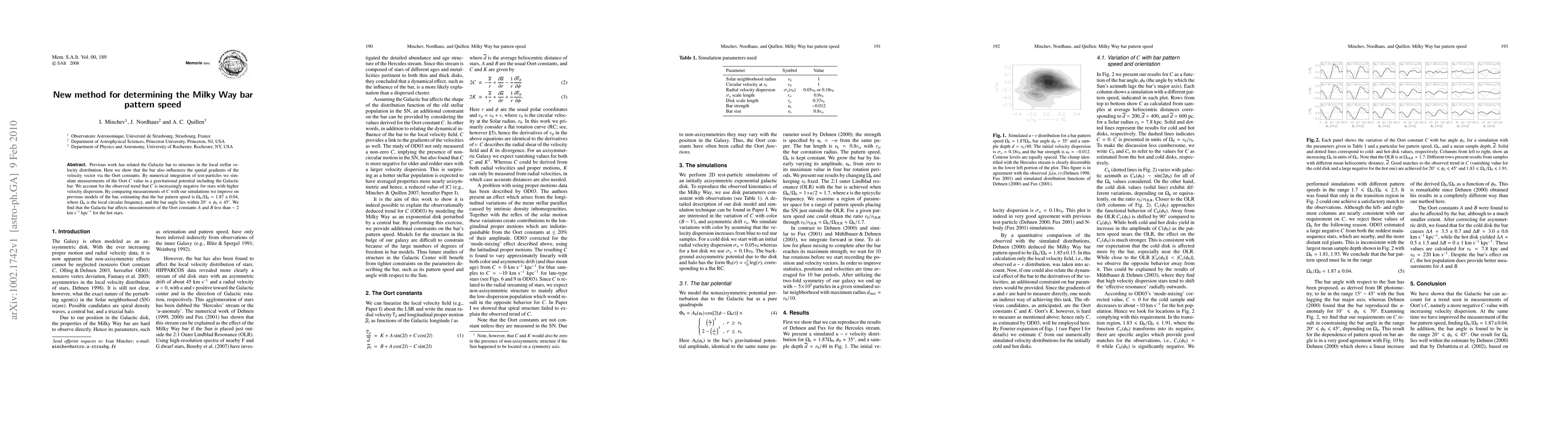 previous models of the bar, estimating that the bar pattern speed is