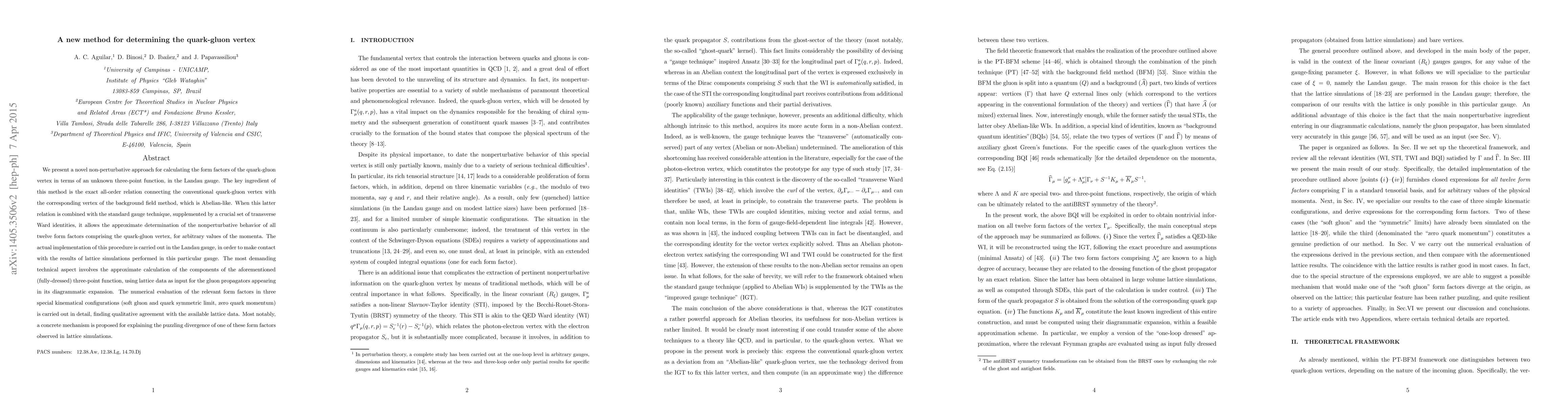 This paper introduces a novel nonperturbative method to calculate the quark-gluon vertex form factors using a combination of the background field method and transverse Ward identities, achieving good agreement with lattice data and proposing a mechanism to explain a previously observed divergence in one form factor.